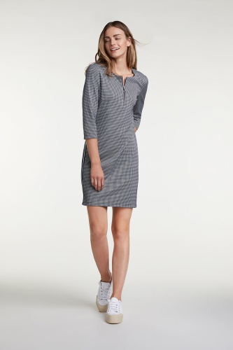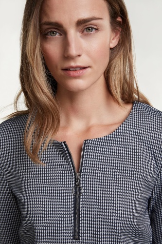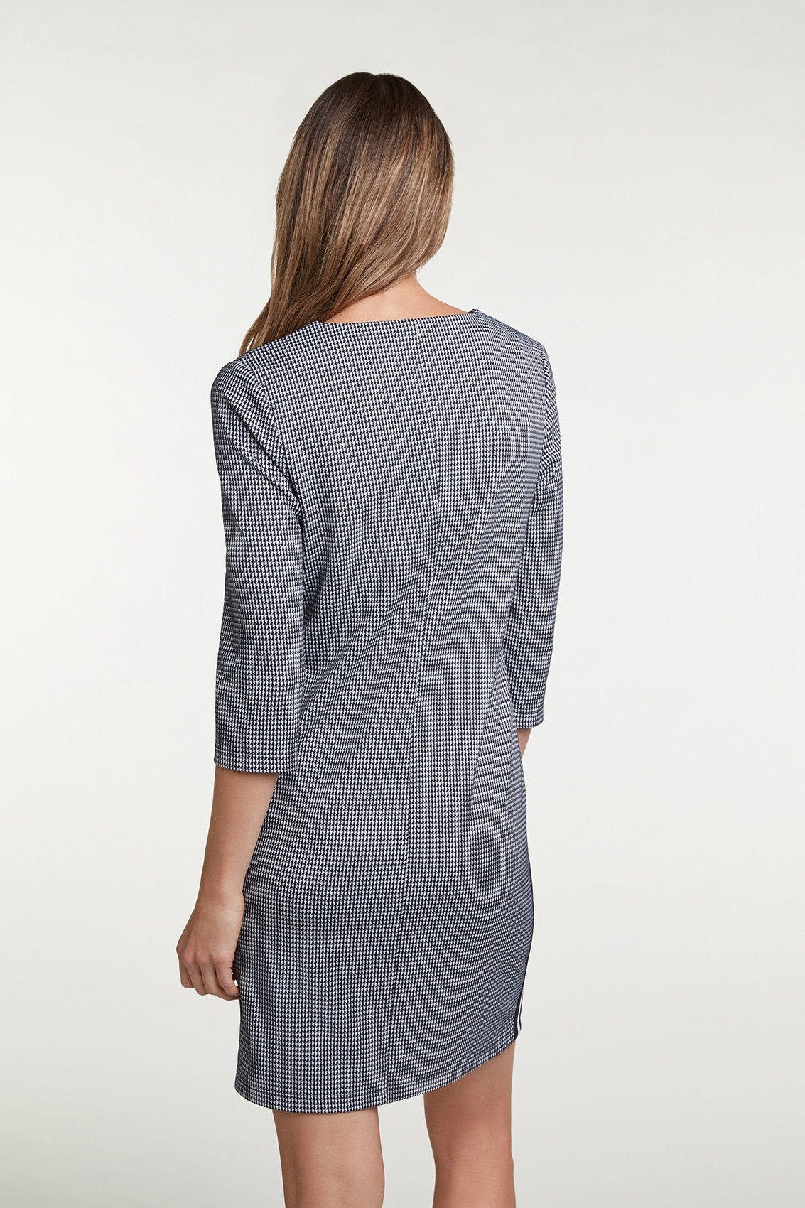Платье - необходимая модель женского гардероба. Приталенный крой подчеркивает достоинства фигуры. Круглый вырез горловины, застежка-молния спереди. Рукава 3/4. Декоративная тесьма вдоль боковых швов. Классический клетчатый орнамент "гусиная лапка". Эта модель великолепно смотрится как с обувью на плоском ходу.