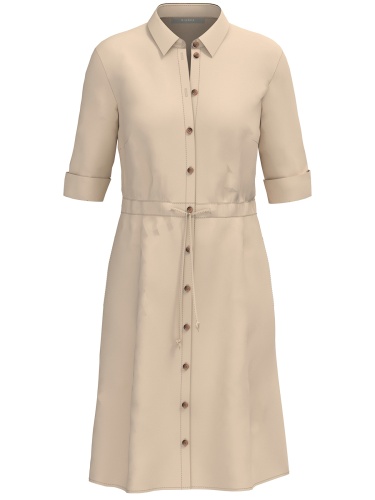 Однотонное платье в базовой расцветке идеально подходит для жаркой летней погоды. Кулиска на поясе позволяет сделать силуэт приталенным. Отложной рубашечный воротник, планка с контрастными пуговицами. Втачной рукав с подворотами.