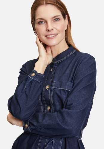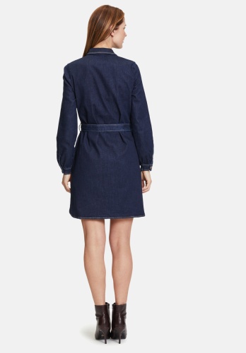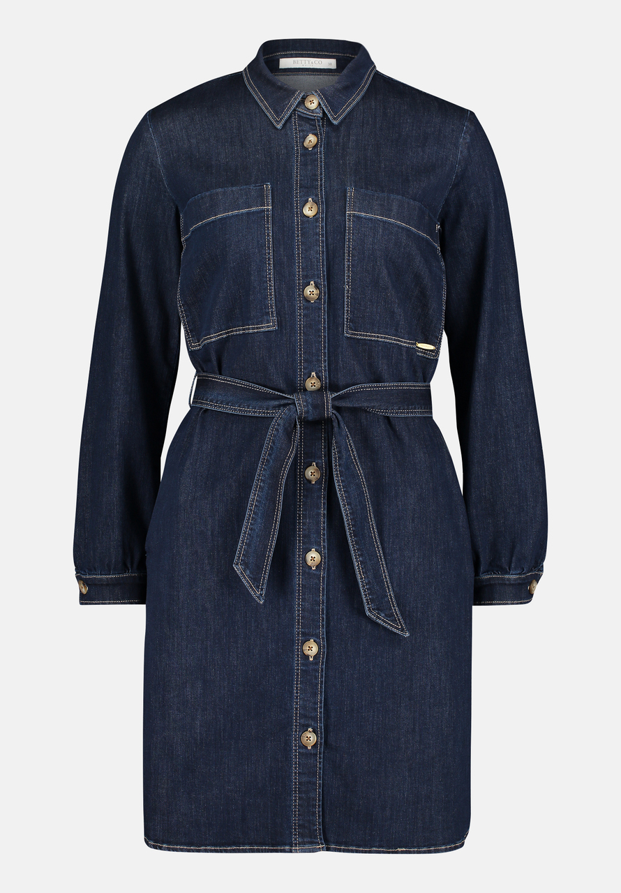 Платье-рубашка с завязывающимся поясом. Накладные карманы, карманы в швах. Длина 97 см.