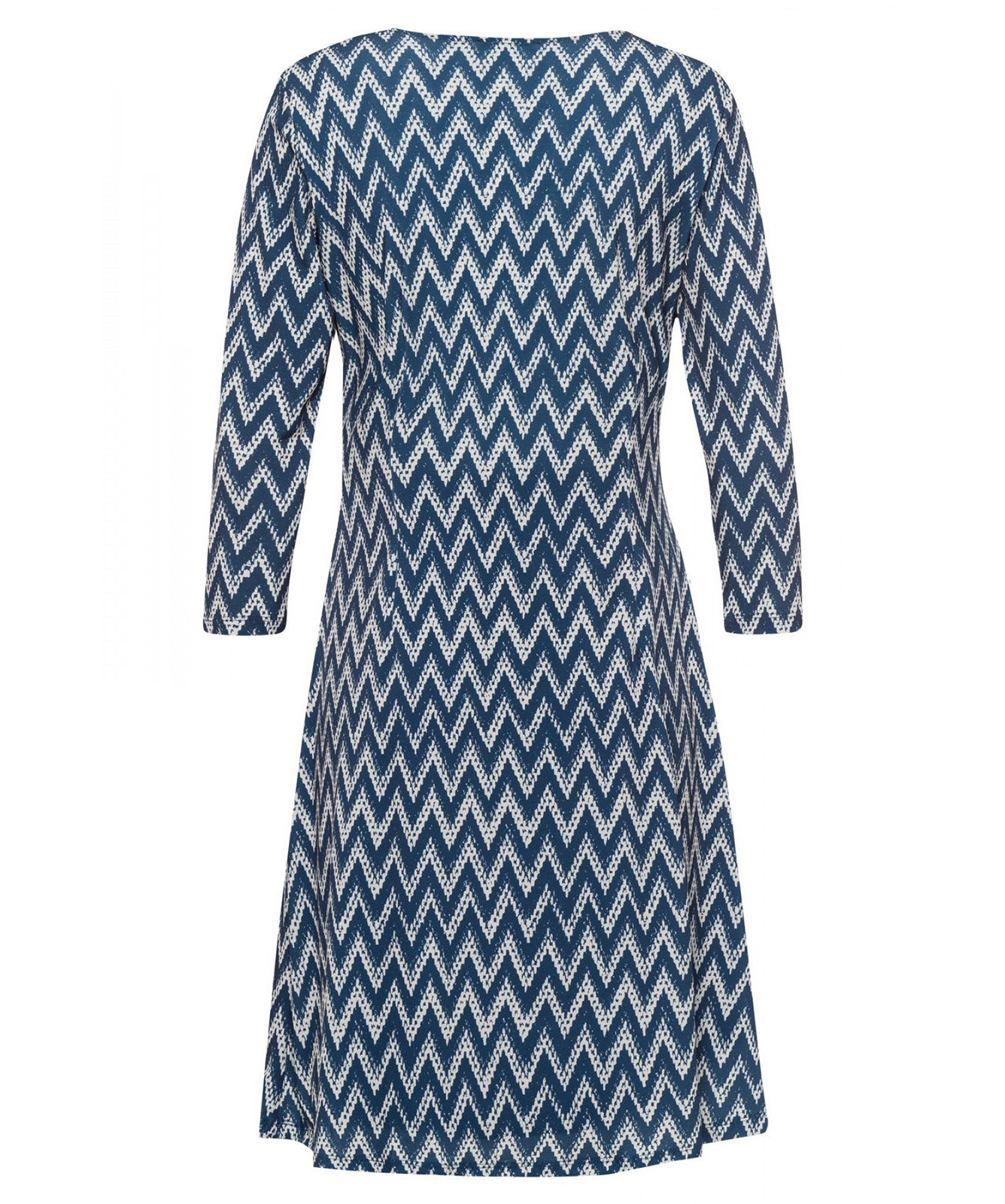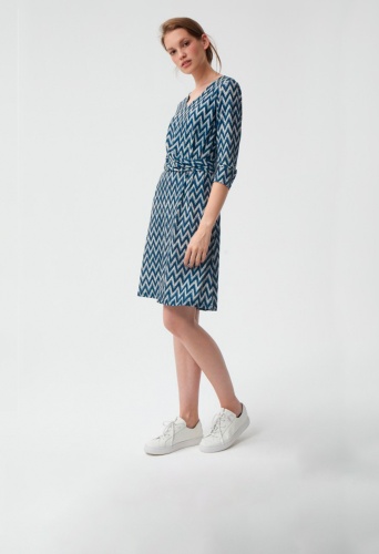 Платье с запахом. Длина выше колена. Геометрический узор. Широкая овальная горловина, втачной рукав ¾.