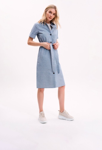 Платье-рубашка прямого кроя с расширенной юбкой. Руквак широкий с маленьким прорезом. Отличный вариант для теплых вечерних прогулок.