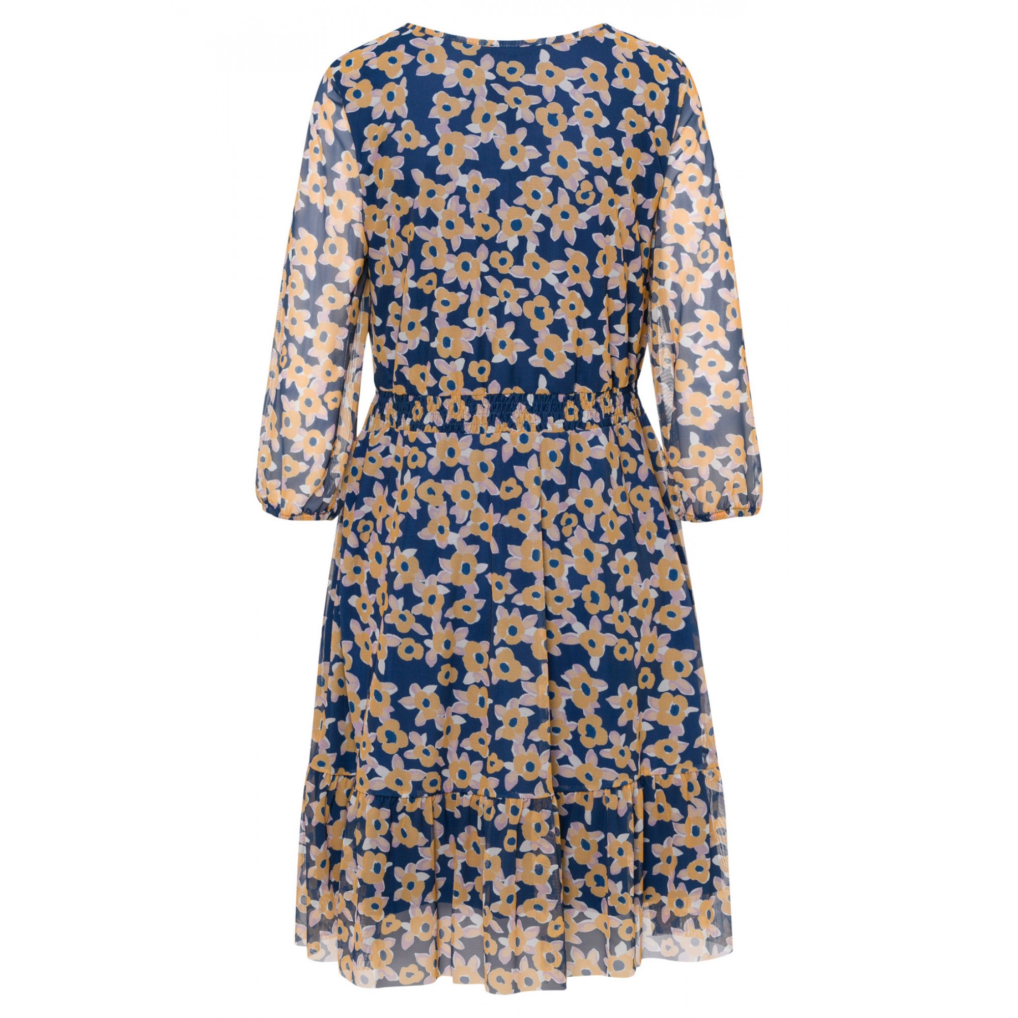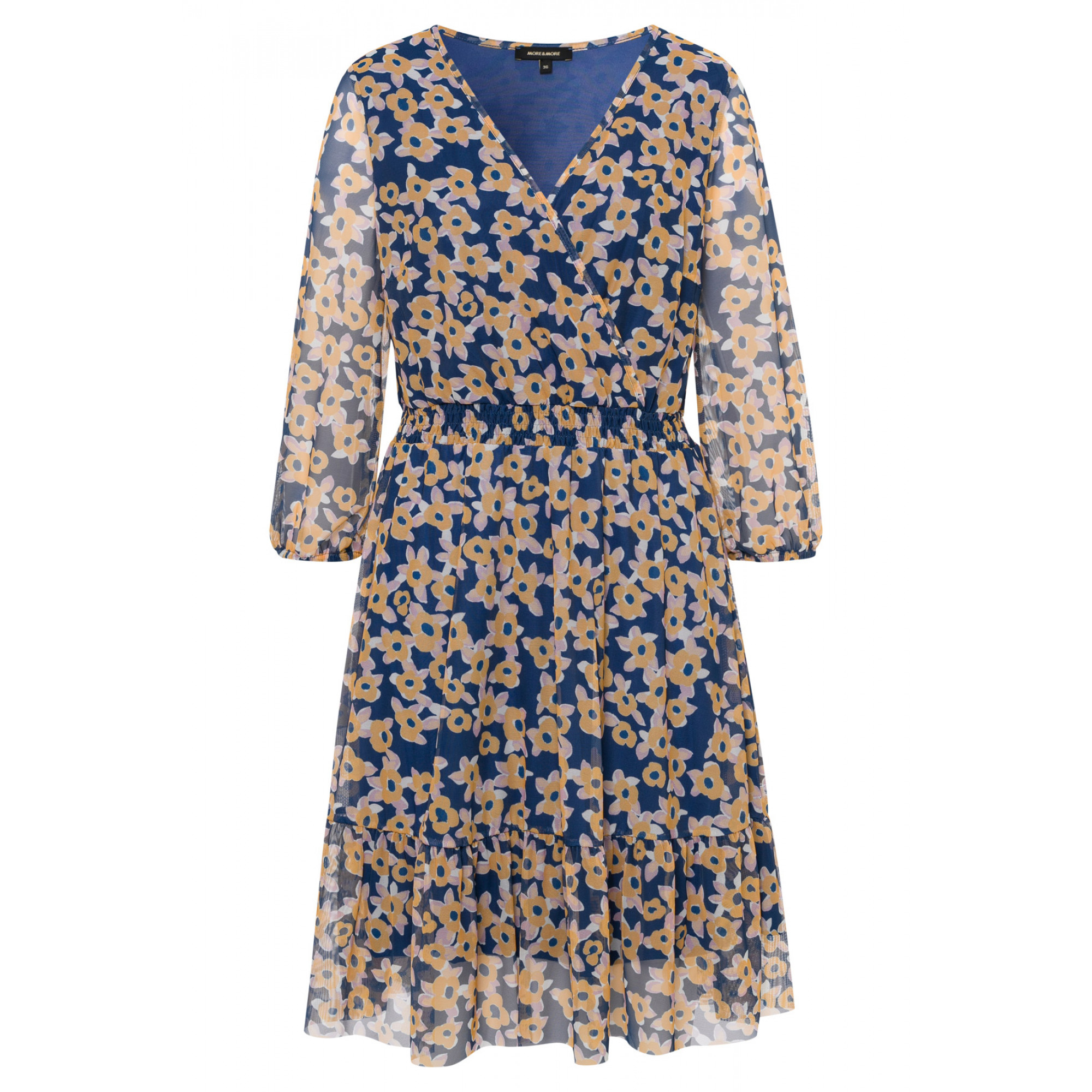 Красивое сетчатое платье от MORE & MORE со свежим летним цветочным принтом. Рукава 3/4 с эластичными манжетами. Длина в размере 42 = 100см