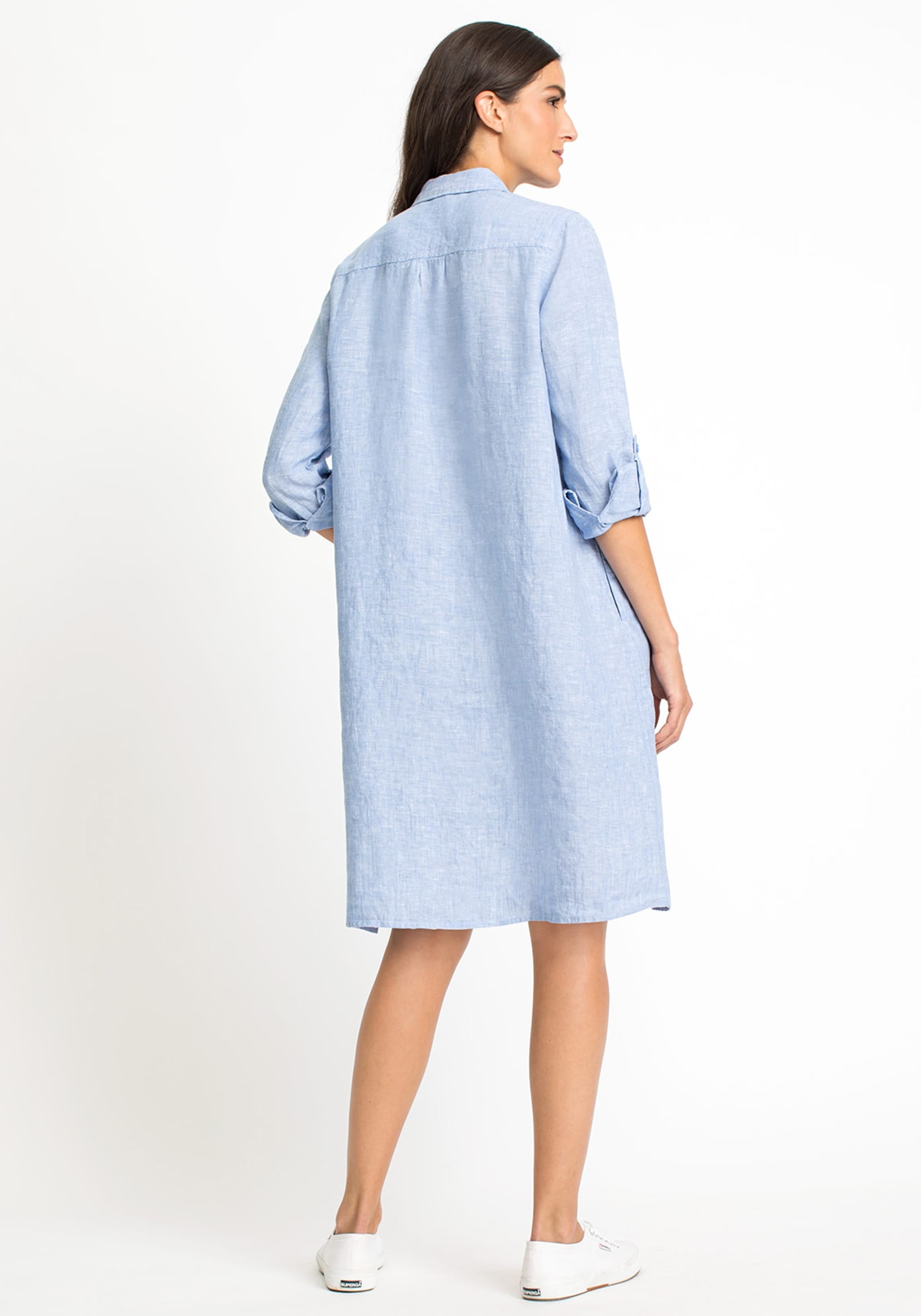 Платье из натурального волокна льна, обеспечивающего роскошный, дышащий комфорт и долговечность.Планка с пуговицами спереди позволяет носить это закрытое как воздушное платье или расстегнутое как негабаритную рубашку поверх вашей любимой бесплатной футболки. С классическим воротником и рукавами, которые можно носить в полную длину или закрепить на ¾ длины с помощью закатанного хлястика.