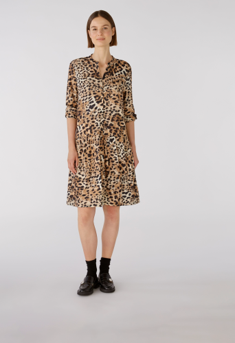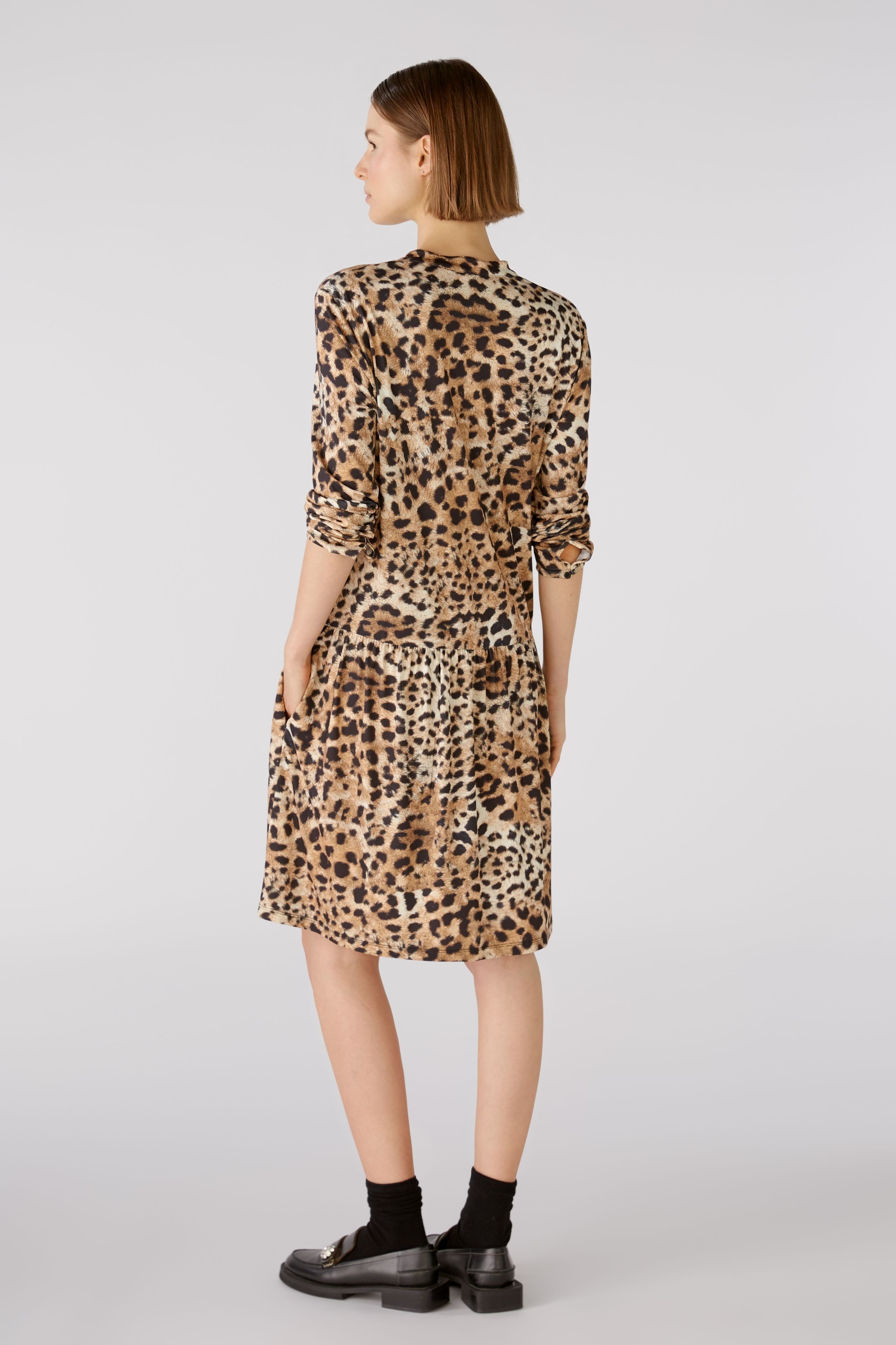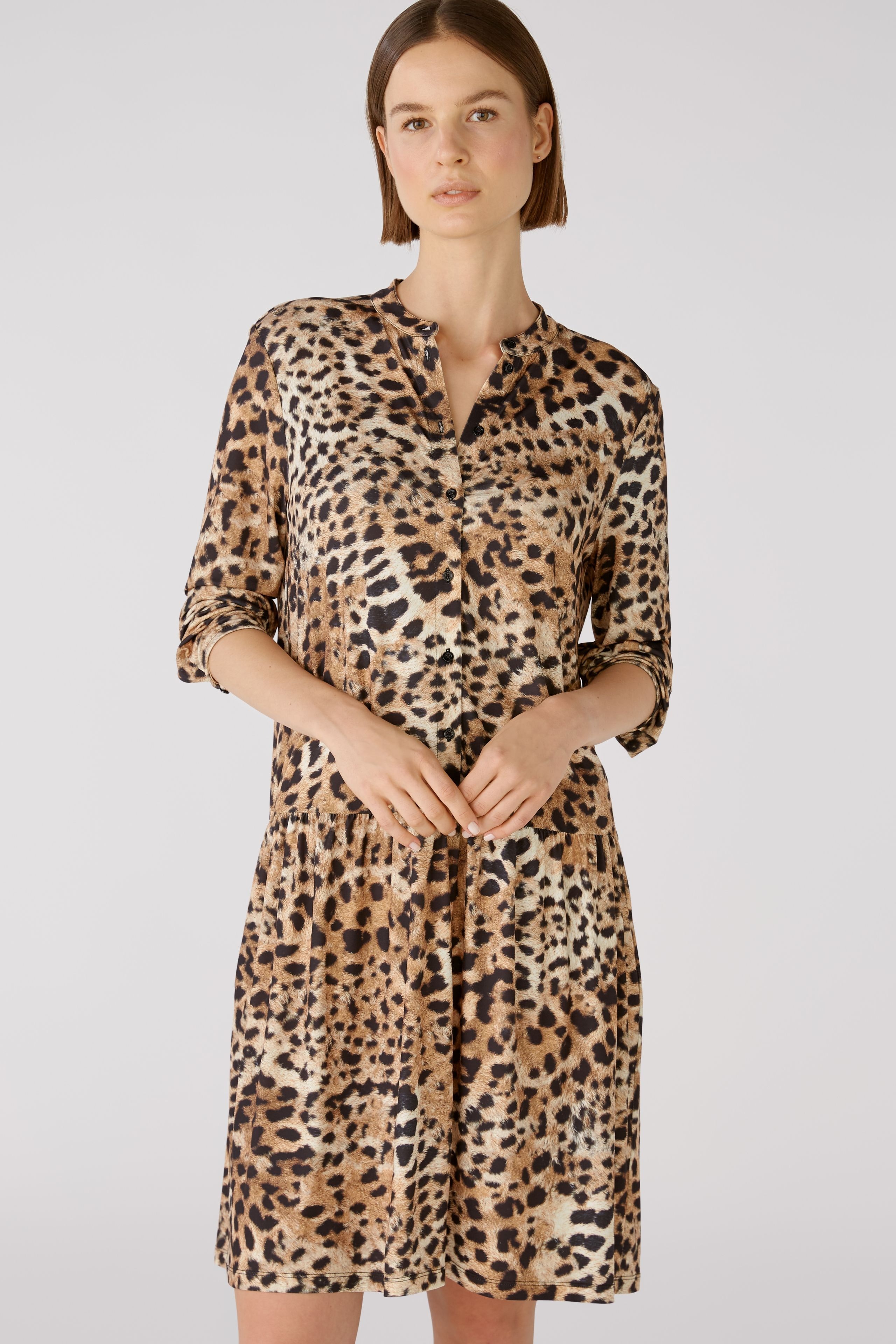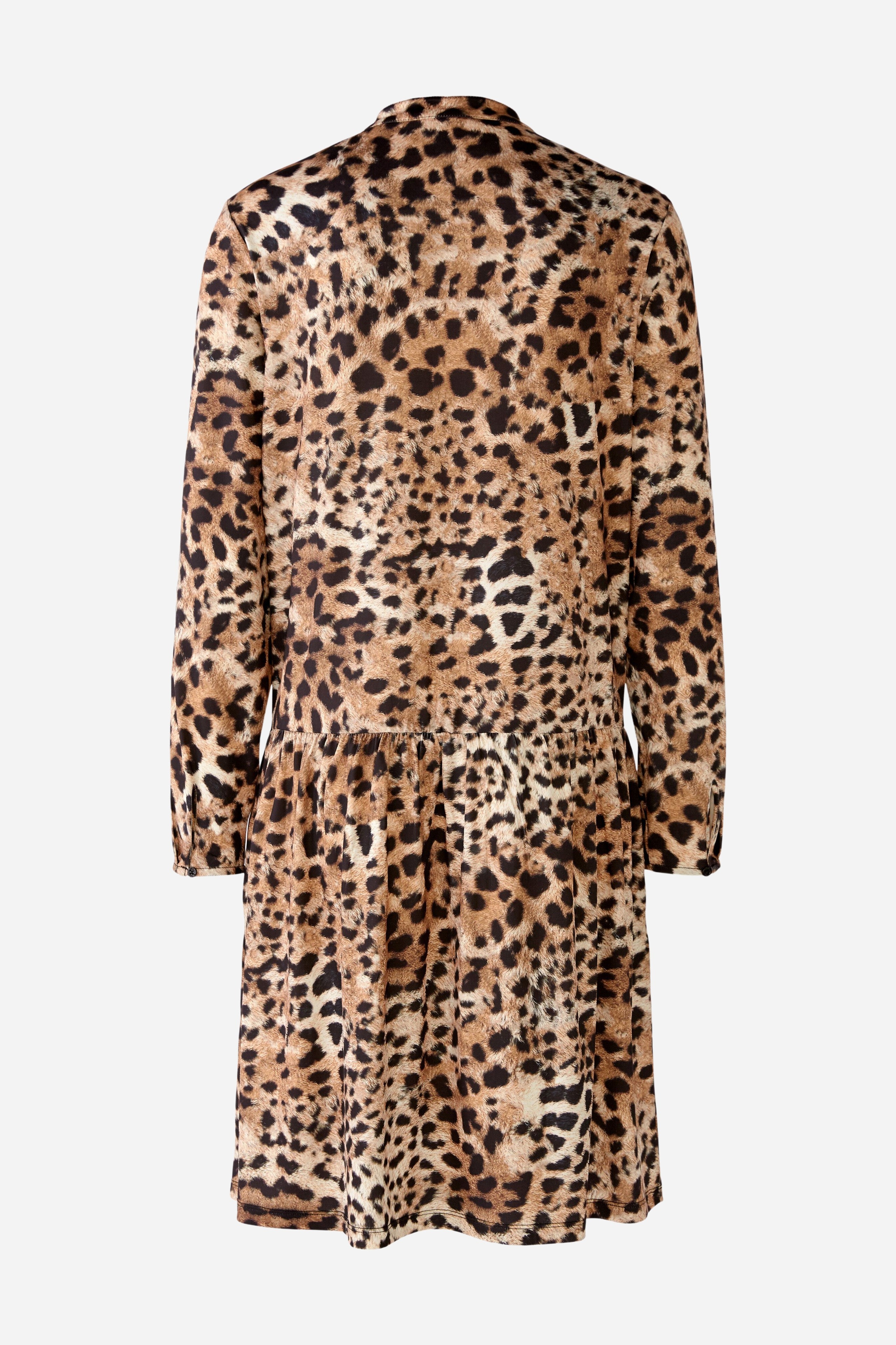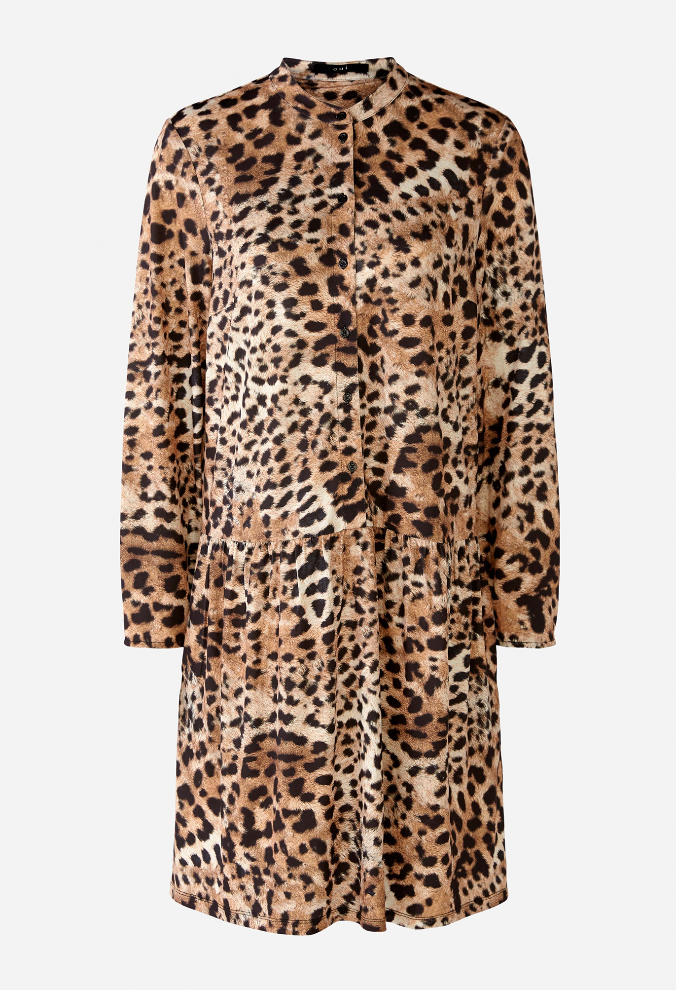 Легкое свободное платье из материала SILKY TOUCH. Струящаяся, не мнещаяся ткань Silky Touch с высоким содержанием эластана и натуралистичным леопардовым узором по всей поверхности. Прилегающая к колену, повседневный крой, больший объем в юбке благодаря рядам вдоль швов. Длинная планка на пуговицах с небольшим воротником-стойкой до основания юбки для удобства надевания. Без подкладки, с боковыми карманами. Длинные рукава с манжетами и застежкой на пуговицы. Не требует глажки Длина для размера 42: 96 см.
