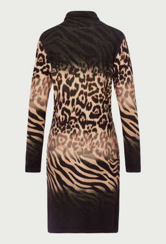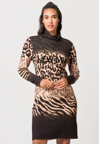 Одна из наиболее часто встречающихся модных тенденций текущего сезона – вязаные платья самых разнообразных фасонов. Эту модель водолазки с длинными рукавами чрезвычайно удобно носить благодаря прямому крою и мягкому тонкому трикотажу. Градиентный животный принт. ПЛАТЬЕ В ПРОДАЖЕ БЕЗ НАДПИСИ НА ГРУДИ.