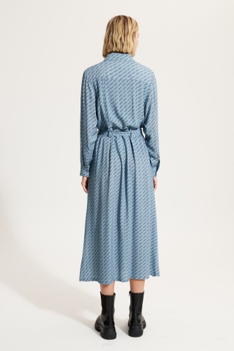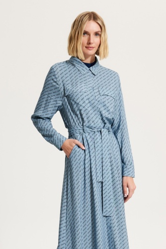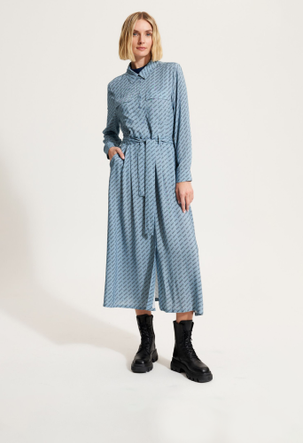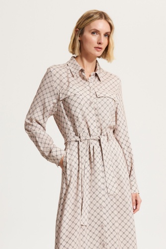 Платье-рубашка с узором. На пуговицах. Поясной шов со складками. Вставные карманы.