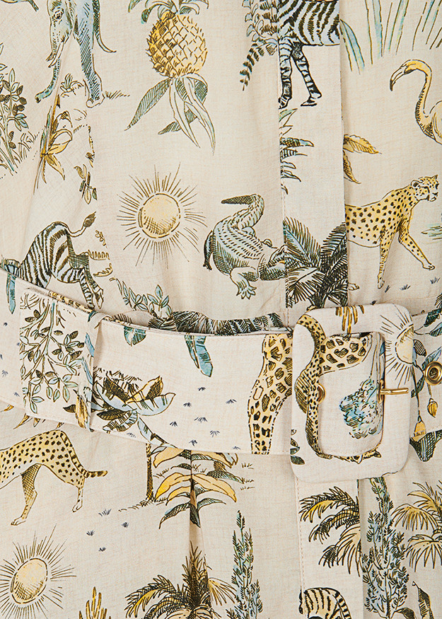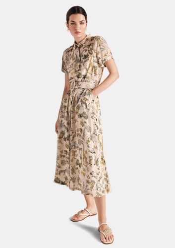 Платье-рубашка модной длины миди с короткими рукавами, поясом и расклешенным силуэтом. Настоящая классика моды, представленная здесь в эксклюзивном принте Safarino на чистой вискозе.