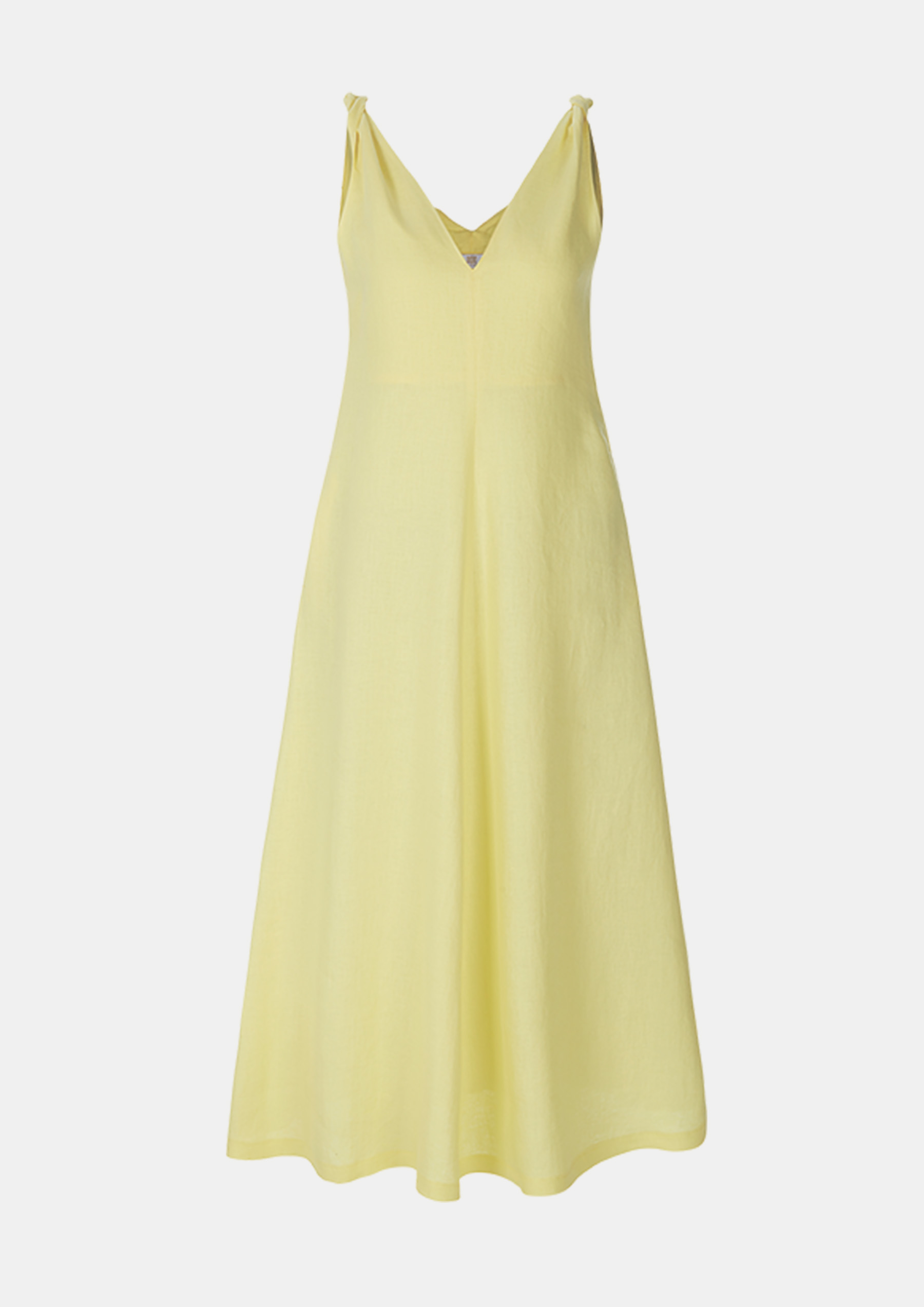Льняное платье, которое покорит своей естественностью. Женственный V-образный вырез, крученые бретели, модная длина миди и, конечно же, качественная ткань – вот что делает его таким очаровательным. Платье имеет подкладку, поэтому его можно носить для более официальных мероприятий или в офисе.