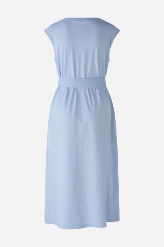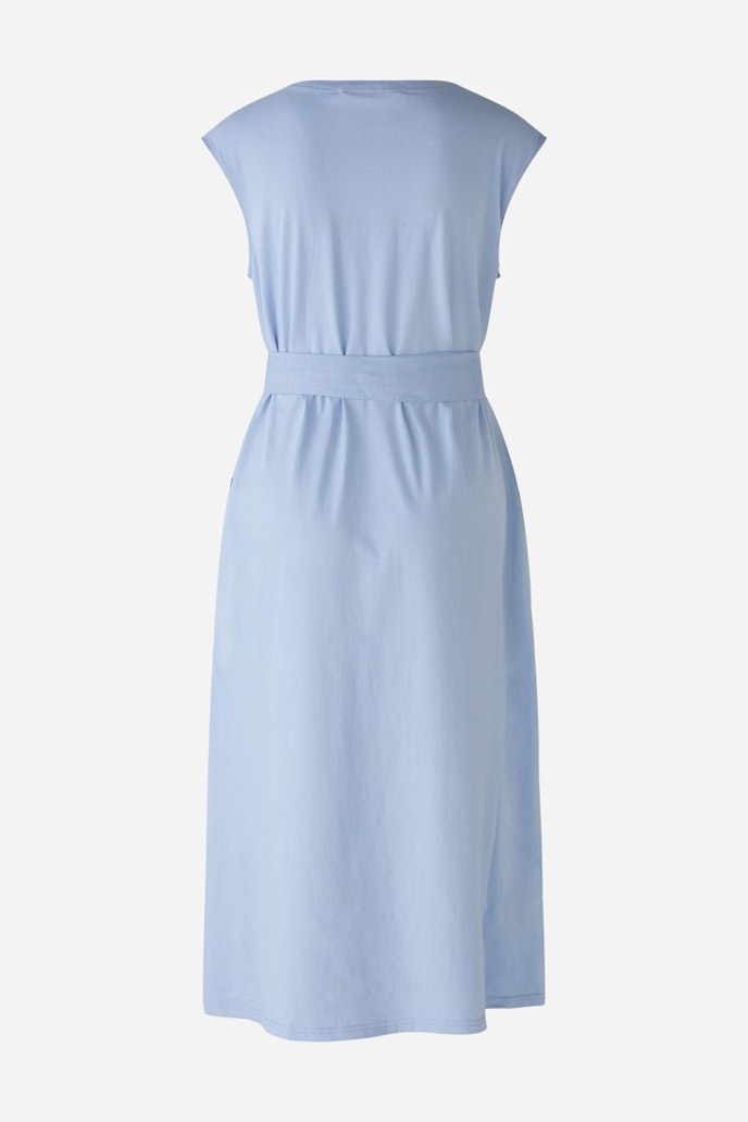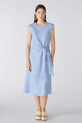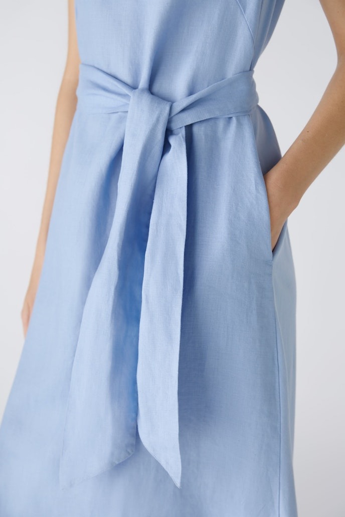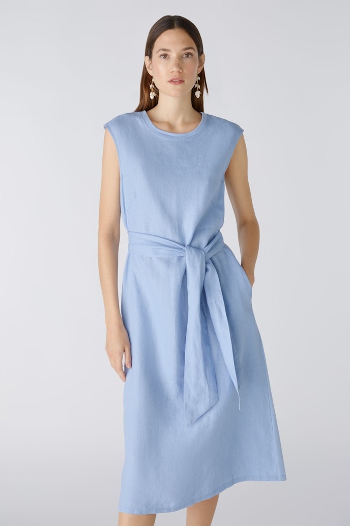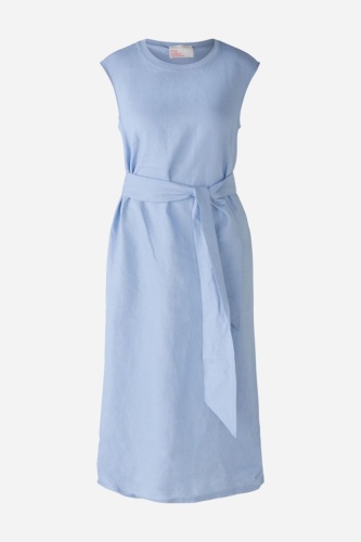 Платье без рукавов – легкое в образе футболки с удобной льняно-хлопковой нашивкой. Узкий крой, длина миди. Круглый вырез горловины с ребристыми манжетами. Боковые карманы. Можно носить с поясом или без него. Без застежки, удобно надевать. Длина для размера 42: 120 см.