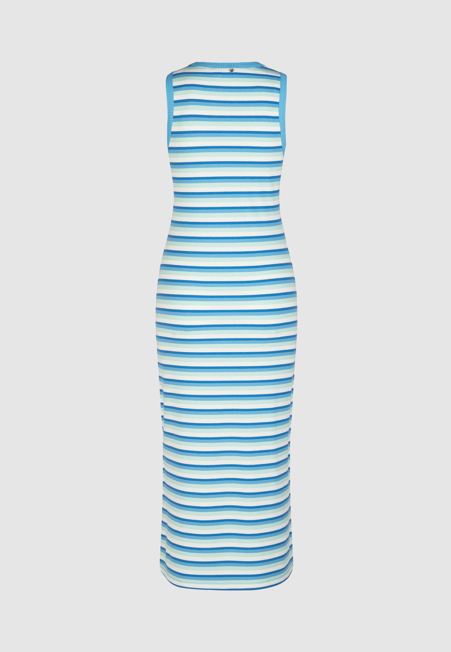 Платье-майка с модным узором в полоску изготовлено из мягкого вискозного трикотажа, обеспечивающего комфортную посадку. Оно выделяется круглым вырезом и узким кроем. Практичная длина миди создает эффектный силуэт.