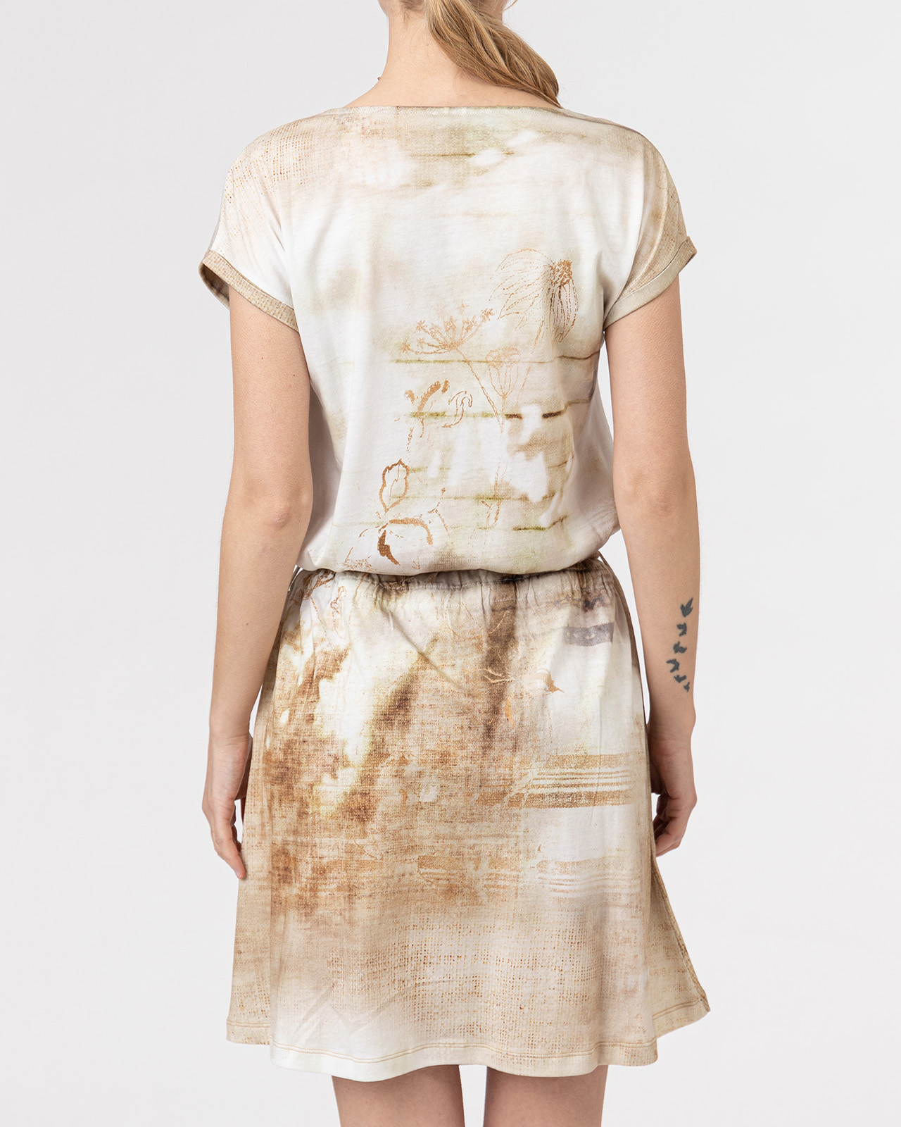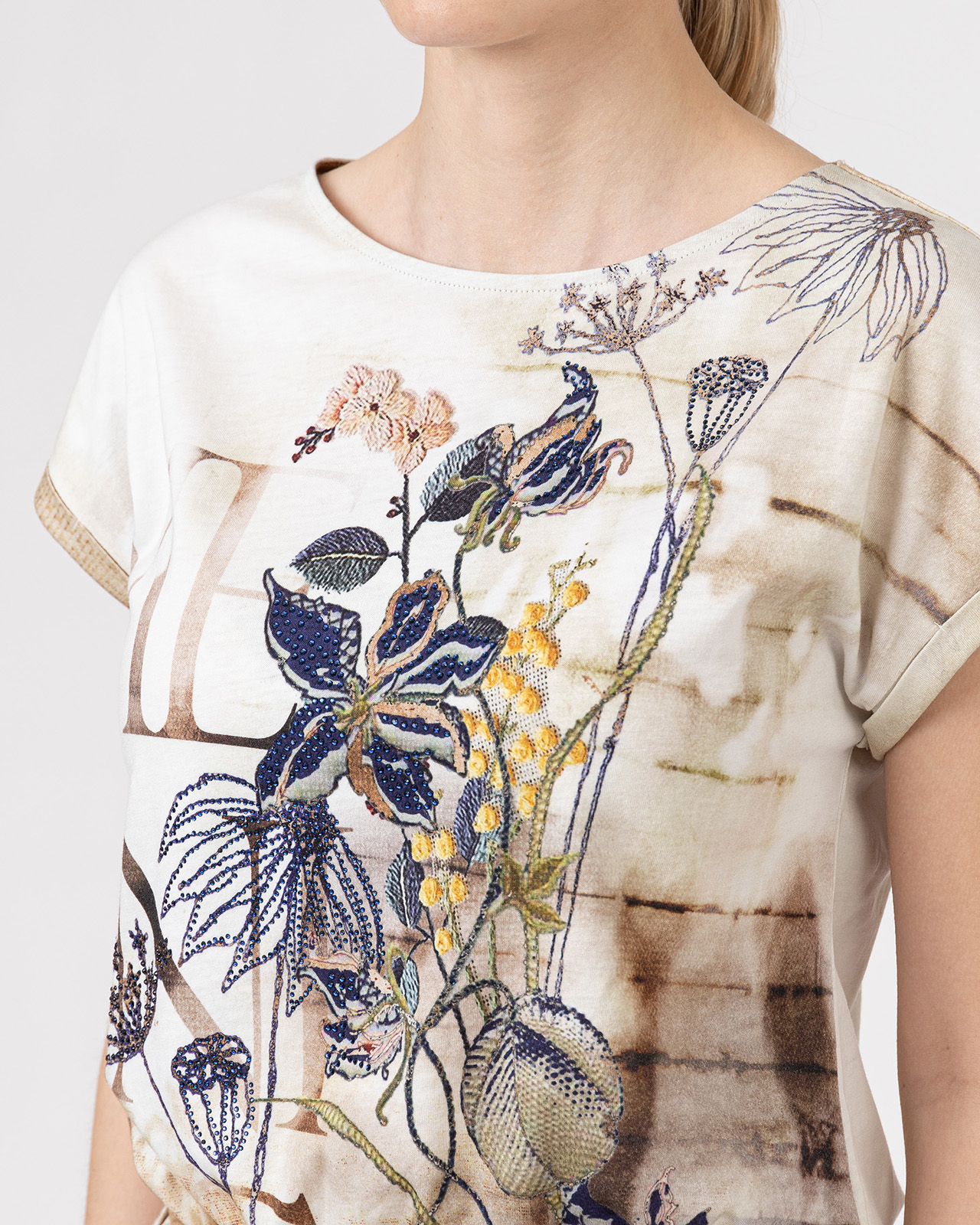 Платье прямого кроя длины мнини с цветочным принтом. Цельнокроеный короткий рукав, овальный вырез горловины. В комплекте идет пояс-шнурок.
