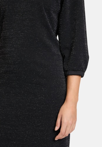 Трикотажное платье впечатляет облегающим кроем и простым дизайном, сочетающим в себе элегантность и современность. Вырез-лодочка придает платью изысканность, а рукава 3/4 гарантируют вневременной образ. Благодаря своему элегантному крою платье универсально и прекрасно подойдет для самых разных случаев: как для офиса, так и для особых случаев.