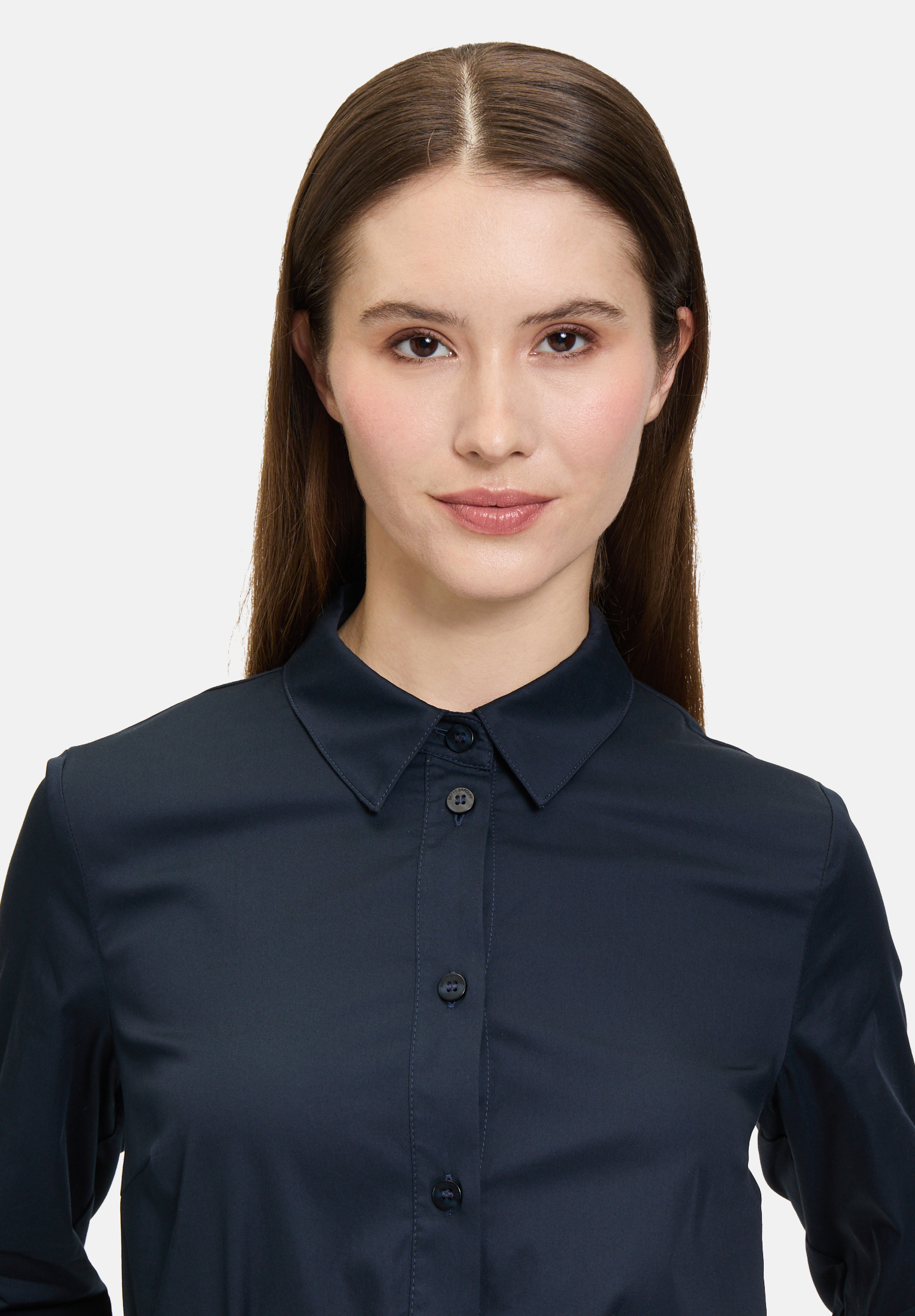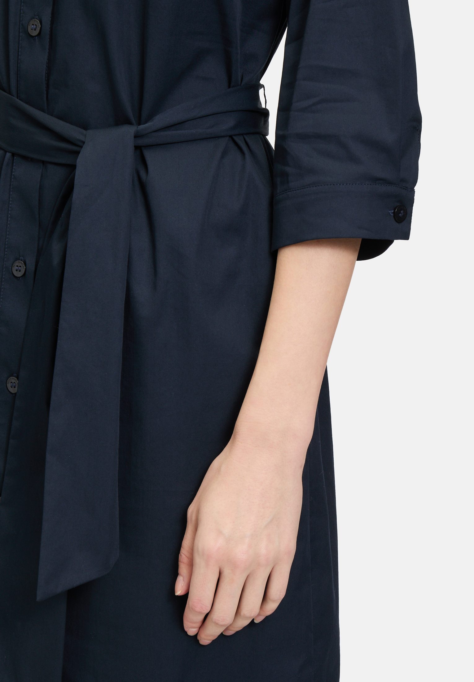 Это повседневное платье длиной до колена с рукавами 3/4 и рубашечным воротником сочетает в себе комфорт и стиль. Облегающий крой и однотонная ткань создают непринужденный образ, а планка с пуговицами гармонично дополняет дизайн.