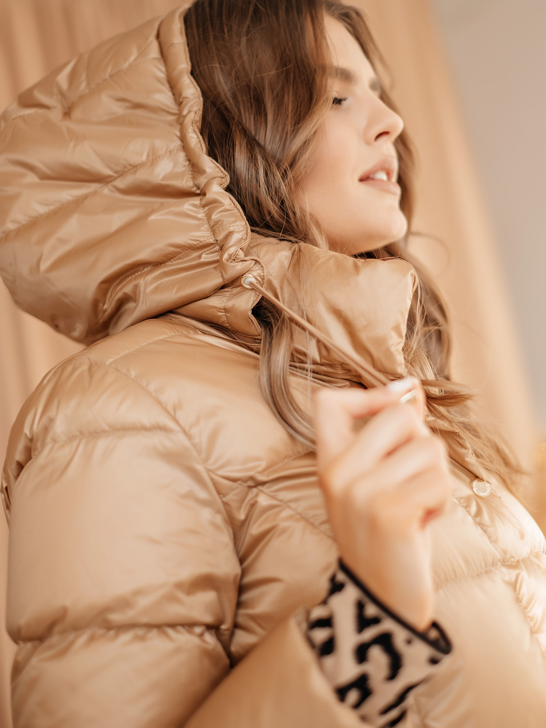 Пуховая куртка - идеальный зимний вариант для тех, кто ведет активный образ жизни! Прямой крой, воротник-стойка, капюшон на кулиске, застежка-молния закрыта ветрозащитной планкой на кнопках, карманы на молниях.