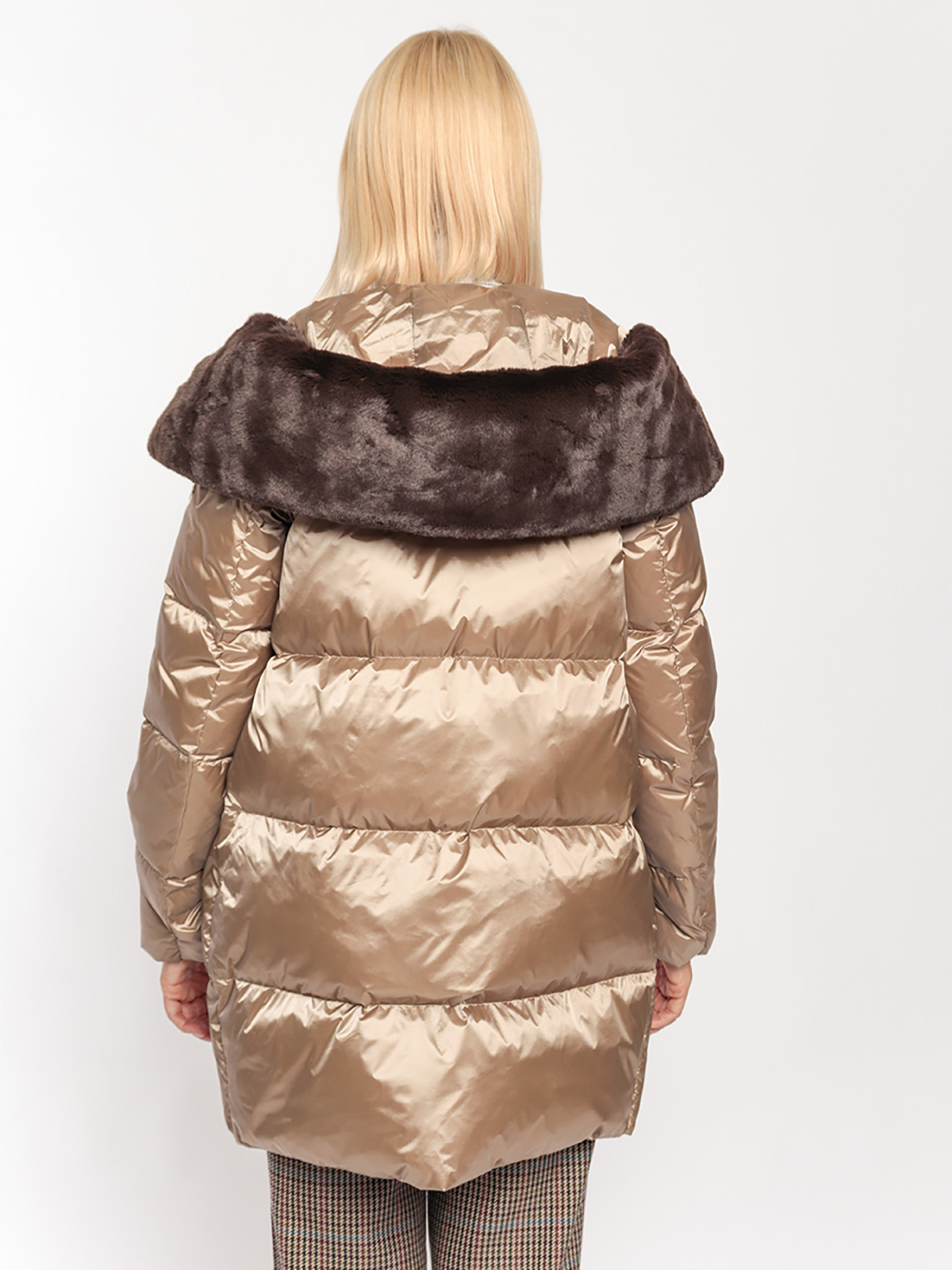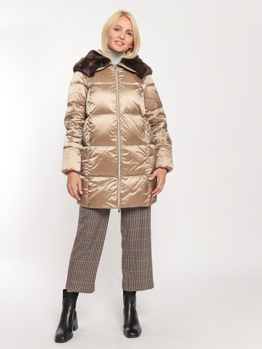 Стеганая зимняя куртка с пуховым наполнителем. Универсальная модель дополнит любой наряд. Воротник стойка со съемной меховой оттелкой, капюшон на молнии. Застежка на двустороннюю молнию. Два боковых кармана на молнии.