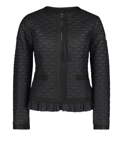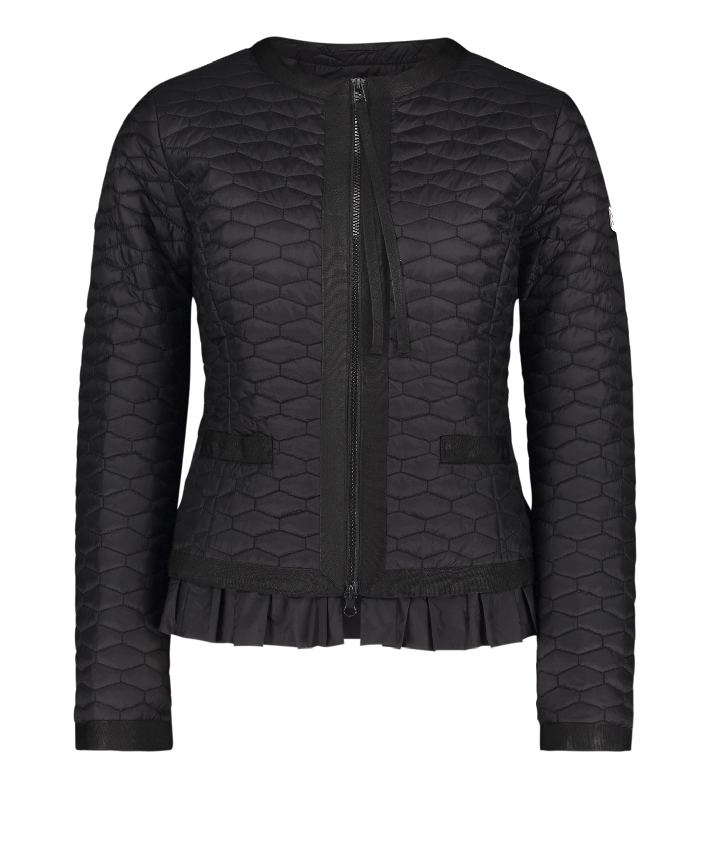 Легкая куртка-ветровка. Застежка-молния, круглый вырез горловины. Декоративный элемент дизайна - волан по низу изделия. Добавьте шейный платок, чтобы составить с этой курткой элегантный и женственный образ.