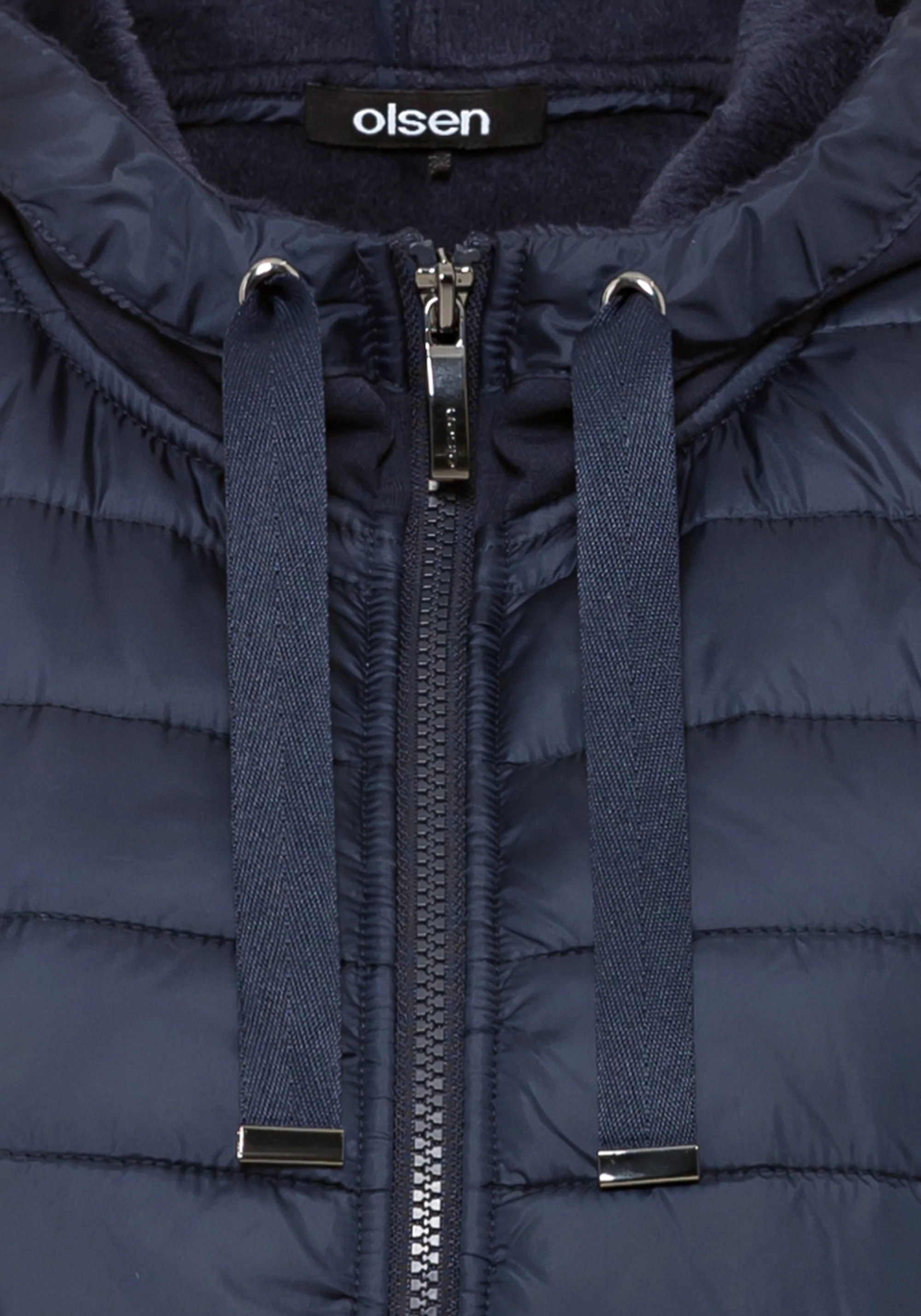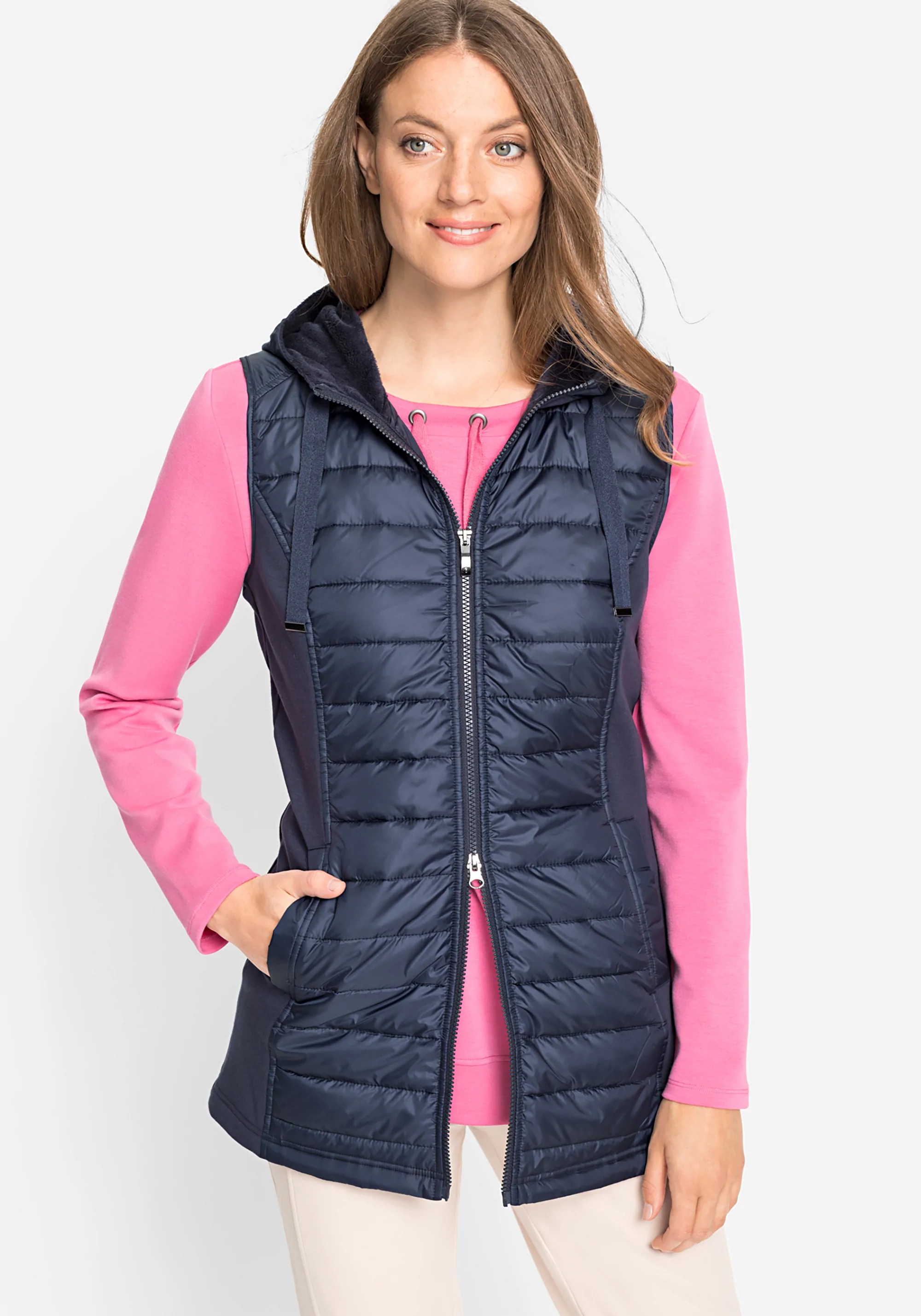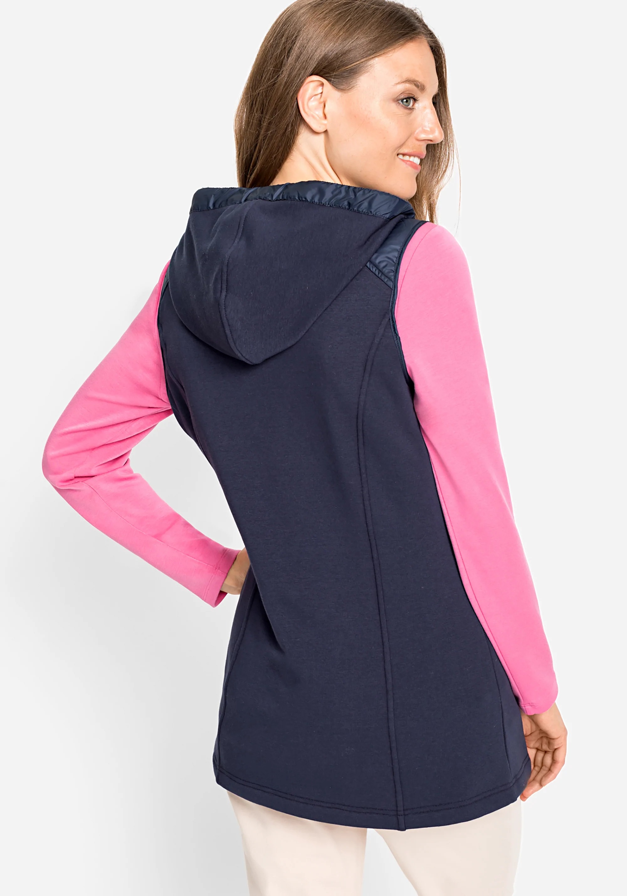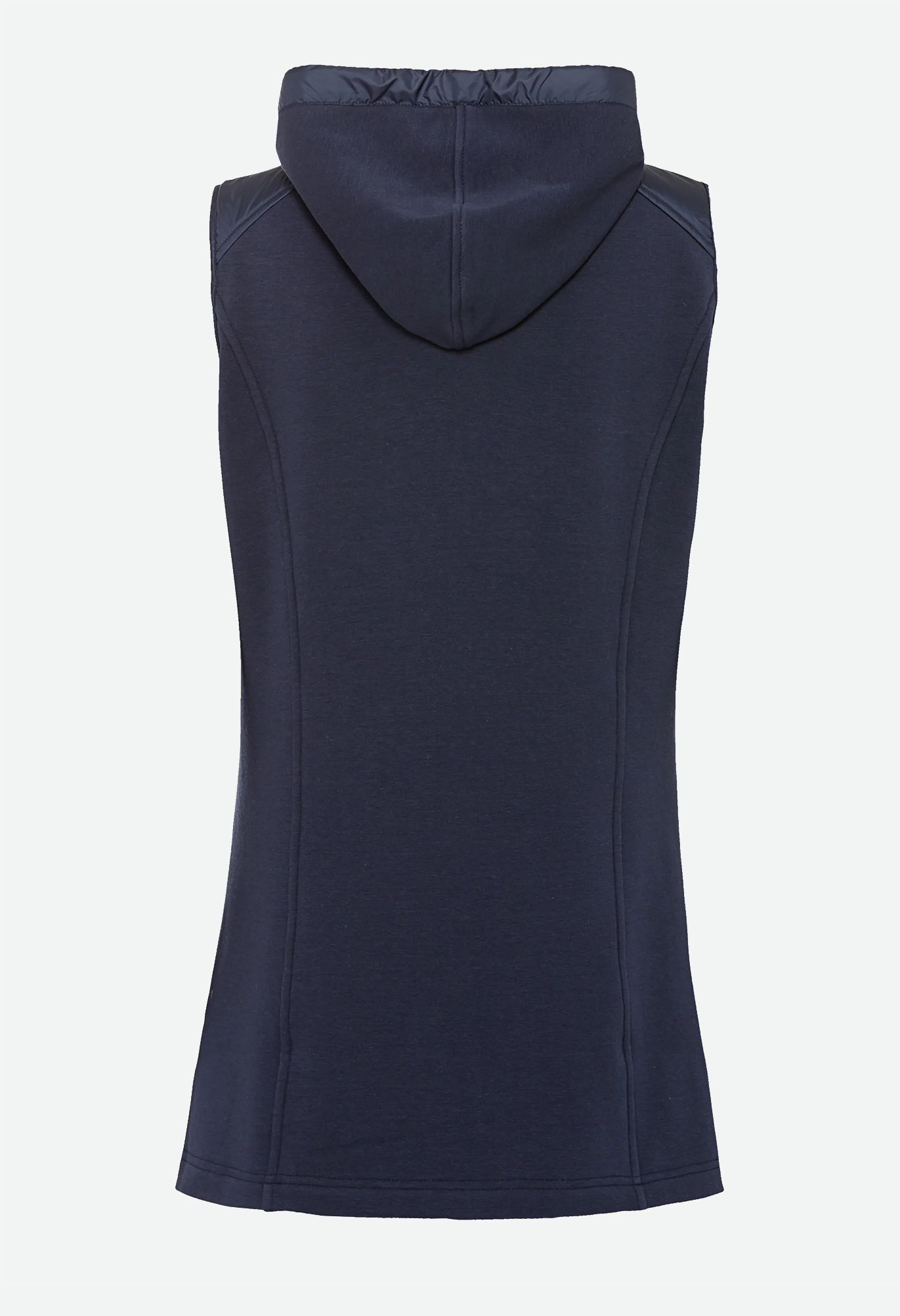На сайте указаны российские размеры. Длинный жилет с капюшоном на кулиске и двусторонней центральной молнией спереди, двумя передними карманами и трикотажной вставкой для дополнительного комфорта делает его идеальным сезонным продуктом. Идеальный компаньон для спокойных прогулок на свежем воздухе.