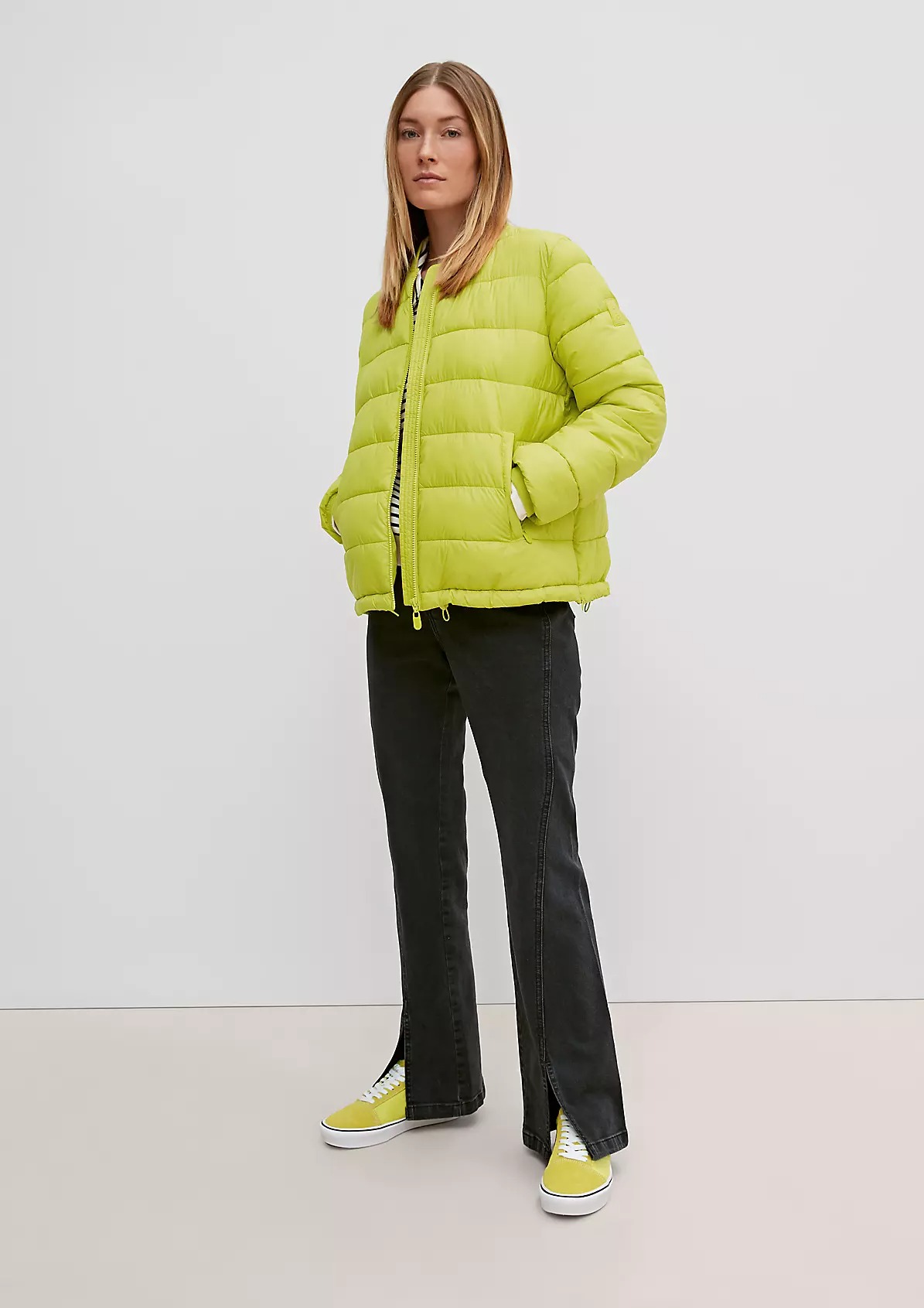 На сайте указаны российские размеры. Стеганая укороченная куртка свободного кроя. Застежка на молнию. Длинные рукава с ребристыми манжетами. Подол с боковой застежкой и кулиской. Карманы на молнии. Длина спины 60 см в размере 42 Рост модели 173 см.