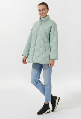 Куртка женская укороченная силуэта трапеция и разрезами по боковым швам. Выполнена из стеганной водоотталкивающей ткани микрофибра. Застежка по борту и карманы на молнии, воротник- стойка.