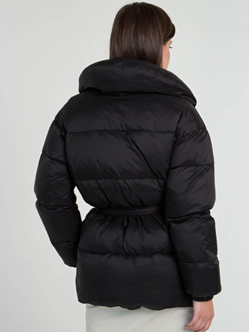 Куртка женская с поясом, выполнена из мягкой ткани с внутренним свечением. Объемный силуэт с акцентной линией плеч и шалевыми лацканами помогает произвести впечатление. С помощью потайной пуговицы, ворот удобно прилегает к шее, защищая от ветра. Центральная застежка двубортная на кнопки, боковые прорезные карманы застегиваются на молнию. Длина: 76 см.