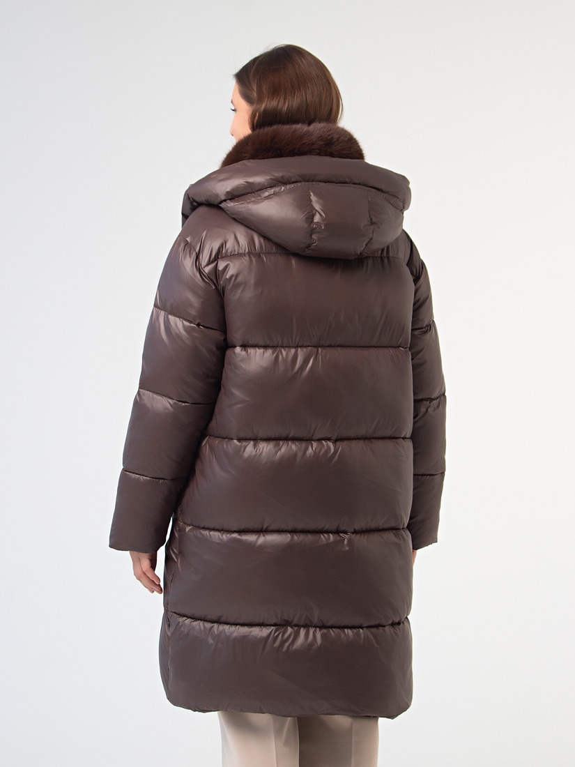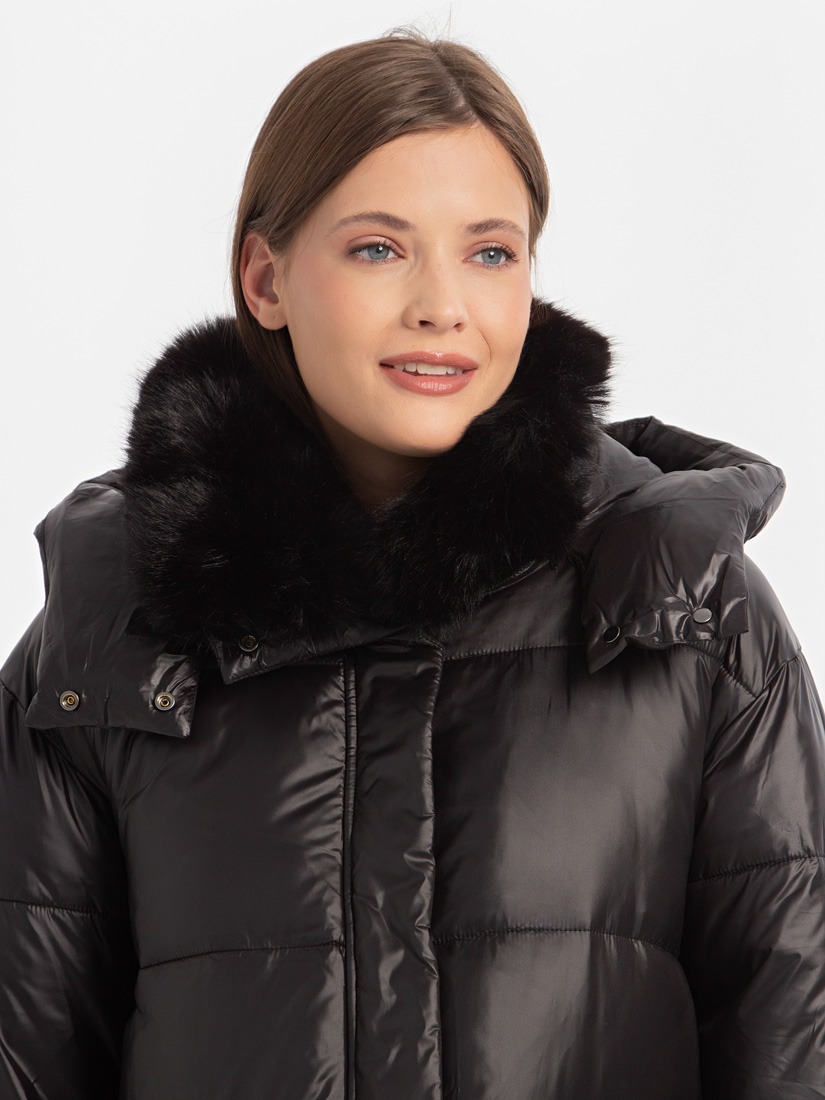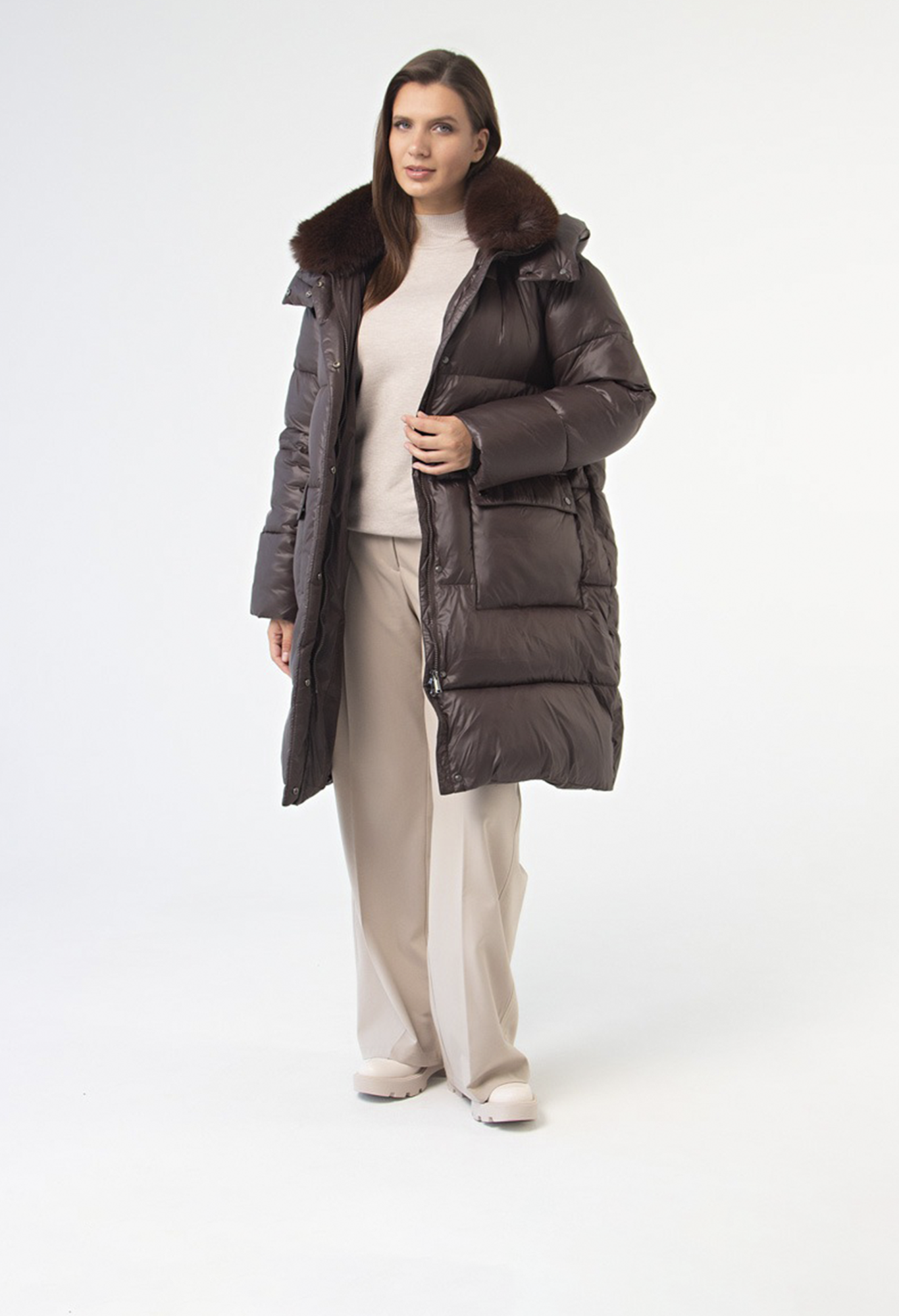 Парка свободного силуэта с накладными карманами из модного нейлона с деликатным блеском. В этой куртке будет комфортно во время прогулки при температуре до -25 градусов. Куртка выполнена по эко технологиям- утеплитель био-пух для этого изделия получили из 15 переработанных пластиковых бутылок, уютный сьемный воротник – экомех, имитирующий песца. Для комфорта сделаны эластичные внутренние манжеты и утепленные двойные карманы, съемный капюшон, противоветровая планка спереди. Модель выполнена в двух расцветках – черный с подкладкой фуксия и кофейный с подкладкой в тон верха. Воротник из экомеха в тон верхней ткани. Длина: 98 см. Утеплитель: 290 грамм/м2