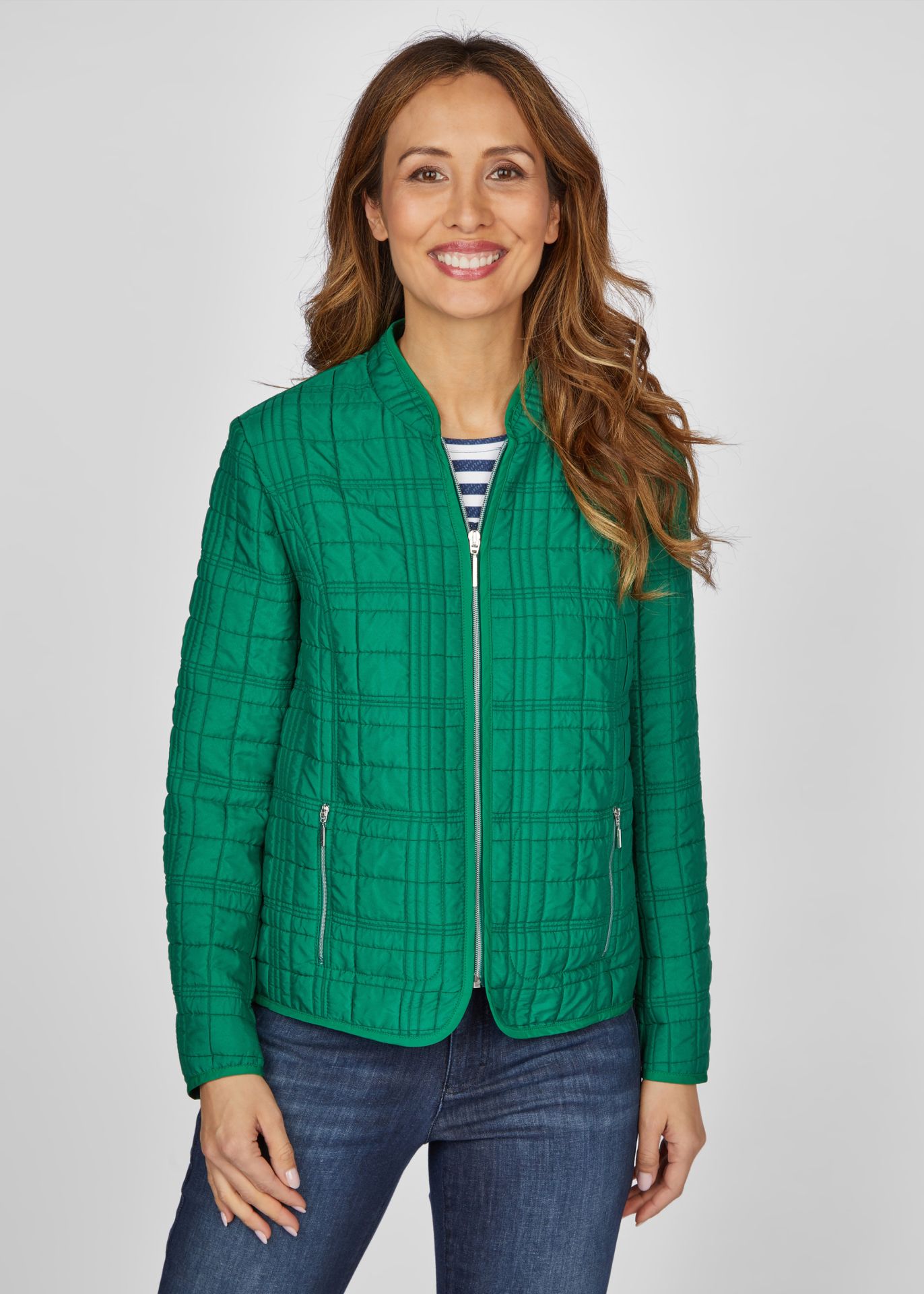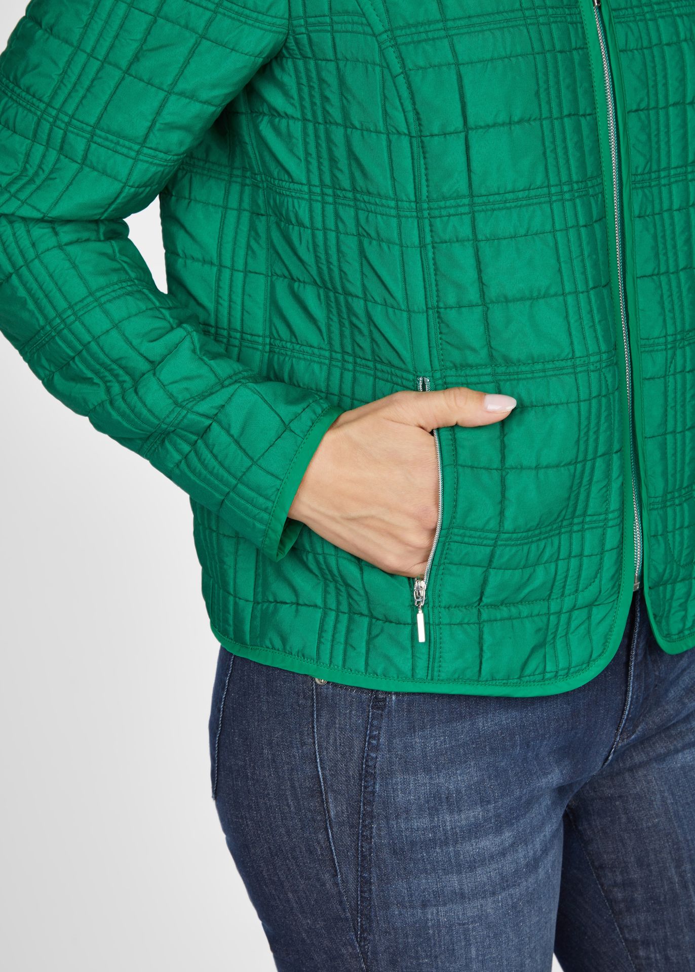 Легкая куртка со структурированной поверхностью – стильный предмет одежды, сочетающий в себе функциональность и модный дизайн. Небольшой воротник-стойка придает элегантный вид. Длинные рукава обеспечивают дополнительный комфорт и тепло в прохладные дни. Практичная молния позволяет легко надевать и снимать куртку, ее можно открыть или закрыть по мере необходимости. Также есть два кармана на молнии. Длина спинки от плеча для 44 размера: 62см.