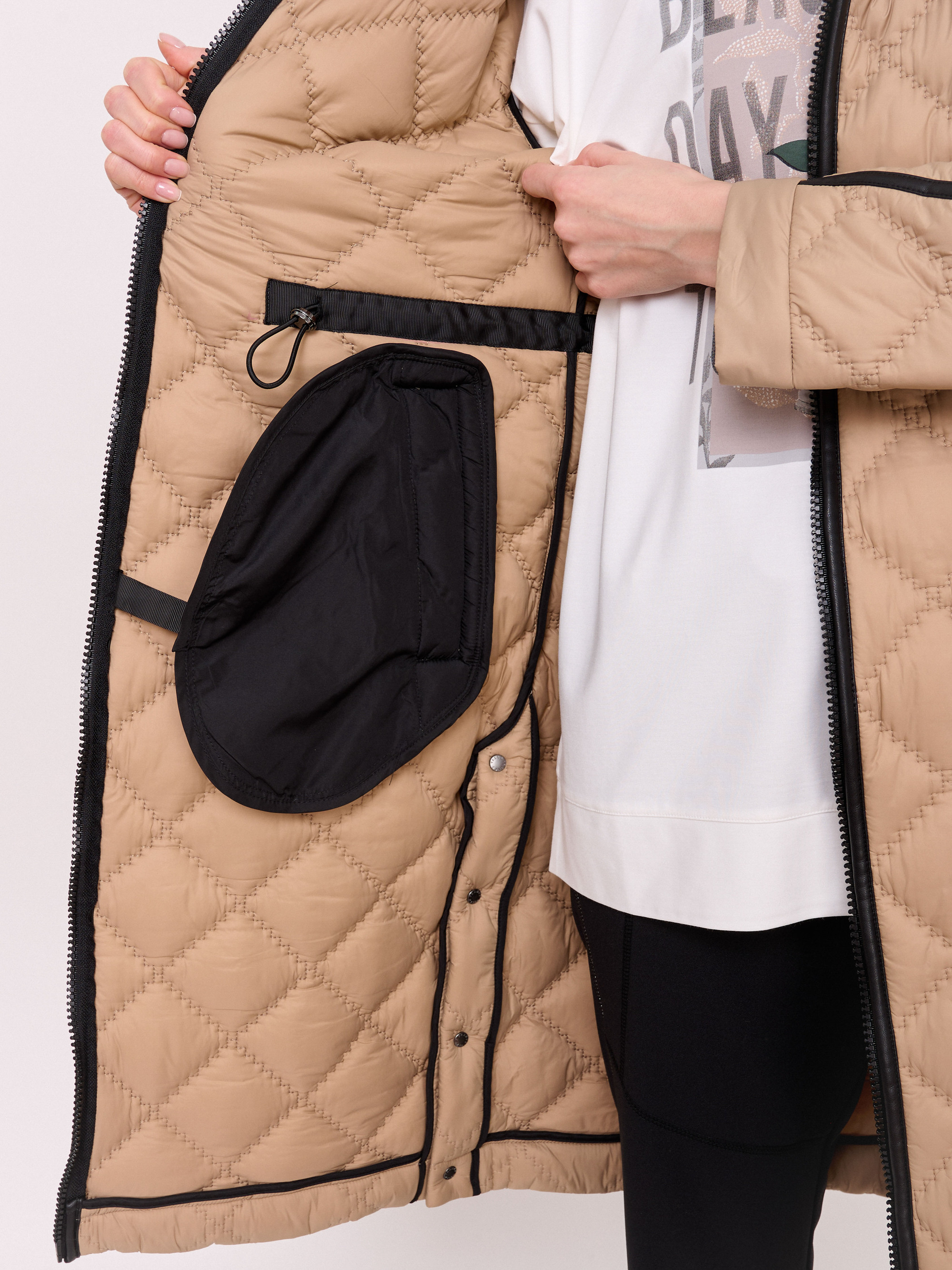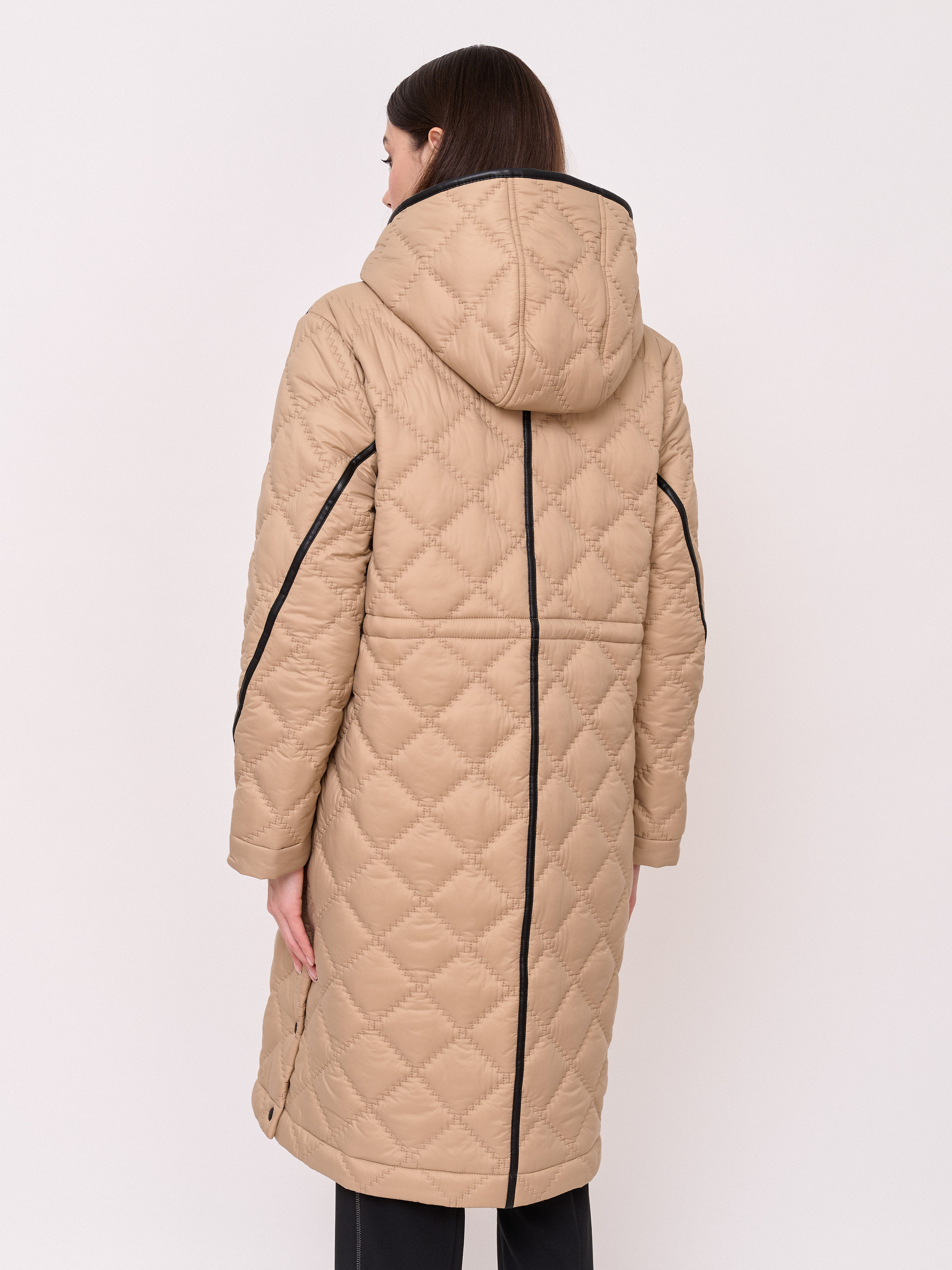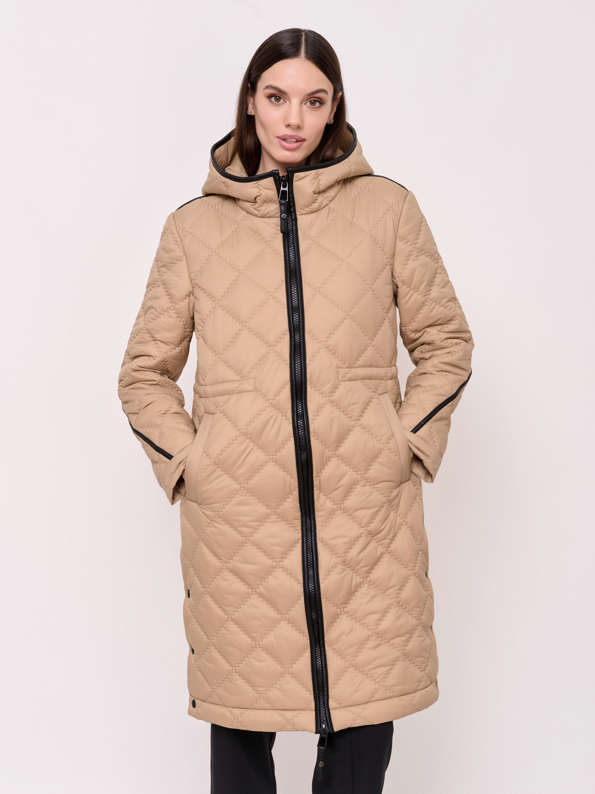 Детали: стеганое пальто, застежка молния, несъемный капюшон, рукава длинные, покрой прямой, без рисунка, утеплитель полиэстер, карманы прорезные, плотность утеплителя 150, без опушки, борты однобортное, боковые разрезы на кнопках. Плотность утеплителя: 150 см.