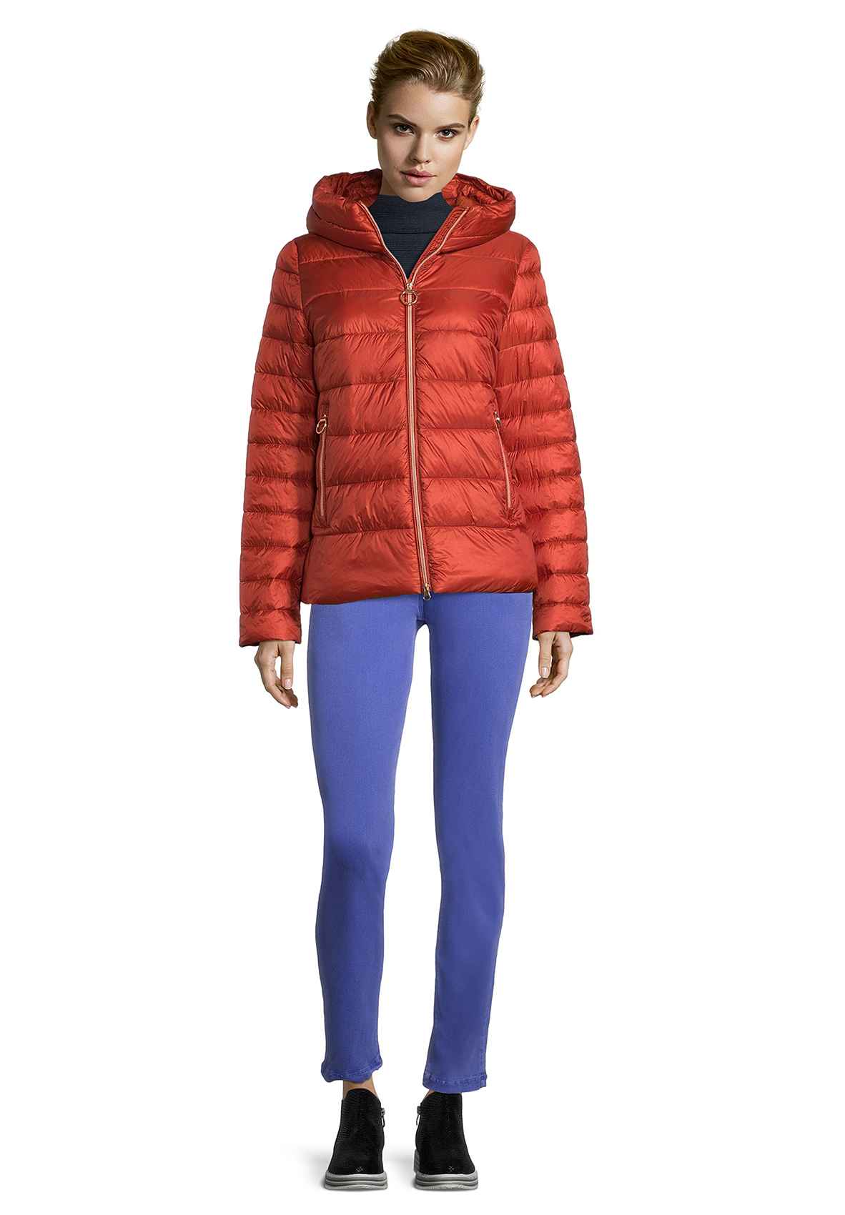 Куртка прямого покроя. Удобная длина обеспечивает свободу движений. Другие элементы дизайна модели - капюшон, двойная застежка-молния, карманы на молниях. Ткань верха отлично защищает от влаги и ветра.