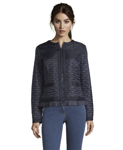 Легкая куртка-ветровка. Застежка-молния, круглый вырез горловины. Декоративный элемент дизайна - волан по низу изделия. Добавьте шейный платок, чтобы составить с этой курткой элегантный и женственный образ.