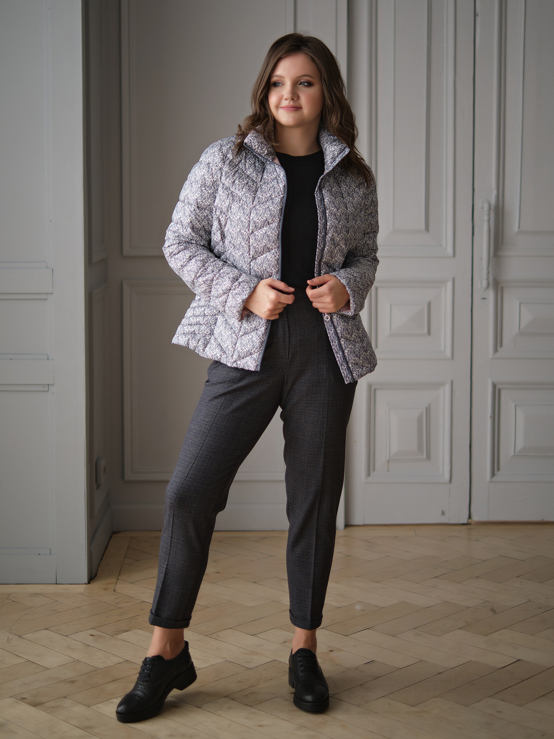 Легкая стеганая куртка с мелким ажурным узором по всей поверхности материала. Куртка изящно завершит весенний романтичный образ или подойдет для повседневного ношения. Воротник стойка защищает от ветра. Застежка молния, боковые карманы на молнии.