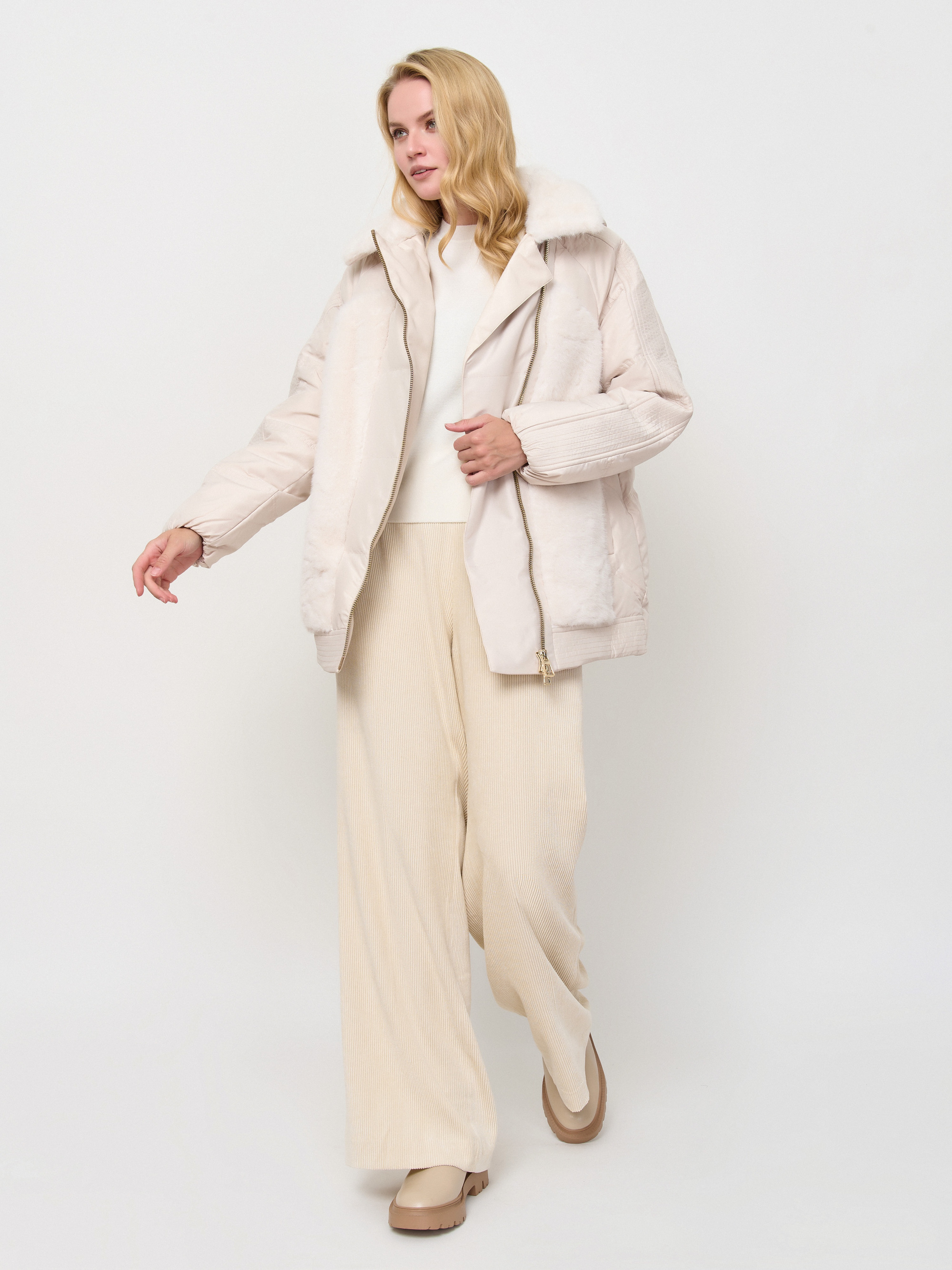 Куртка с отделкой из экомеха создана для комфортной защиты в холодную погоду от 0 до -15°C. Ткань верха: прочный тенсель молочного оттенка; Отделка: экомех «норка» молочного цвета; подкладка - 100% полиэстер; утеплитель - 90% пух / 10% перо. Детали: застежка молния, опции капюшона съемный капюшон, рукава длинные, покрой прямой, без рисунка, утеплитель пух, карманы прорезные, без опушки.