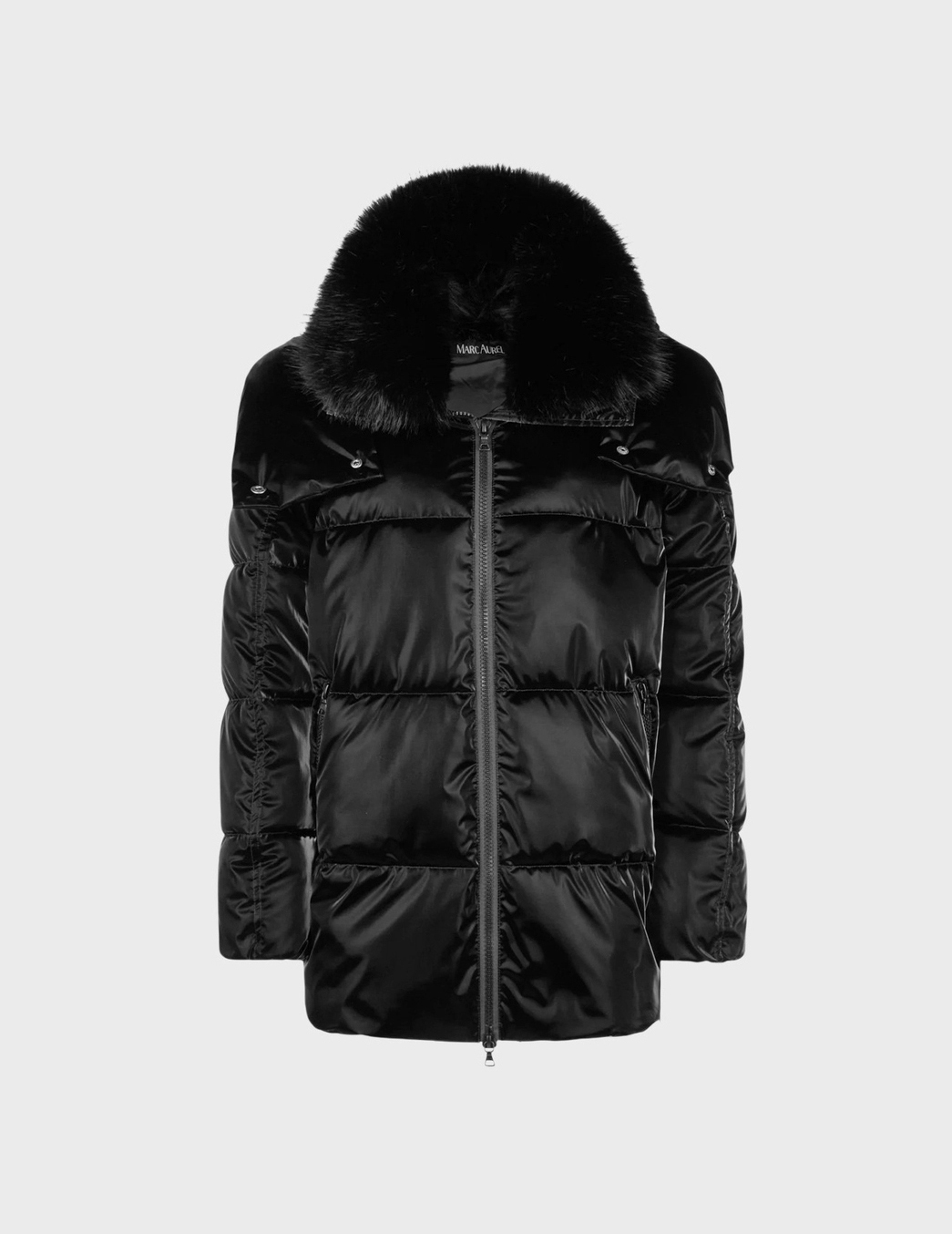 Стеганная куртка от бренда MARC AUREL прямого силуэта на молнии и кнопках. Капюшон - съемный с меховой отделкой. Два внешних кармана и один внутренний. Декор: Мех, нашивка. Сезон: Осень-Зима. Подкладка: 100% Хлопок.