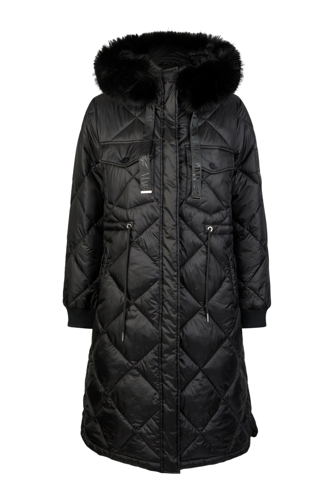 Удлиненная зимняя куртка от бренда MARC AUREL. Пуховик выполнен из водоотталкивающего атласа. Капюшон со съемным искусственным мехом и регулируемым шнурком обеспечивают оптимальный комфорт. Ососбенности модели: - Водоотталкивающий сатин. - Капюшон с искусственным мехом. - Накладные карманы на груди и прорезные по бокам. - Боковой разрез.