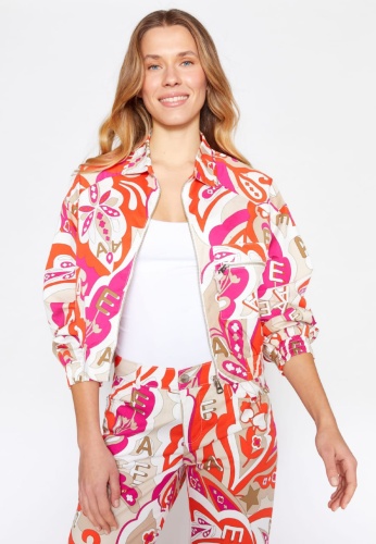 Ветровка от AENGELS — идеальна для стильного повседневного образа. Эластичные манжеты обеспечивают комфорт и сохраняют форму, цветочный принт в стиле ретро добавляет уникальный штрих, а слегка укороченная куртка выглядит женственно.