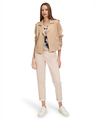 Свободная куртка-жакет Betty Barclay бежевого цвета. Укороченная модель с отложным воротником, без застежки, имеются врезные карманы по бокам. Стильная куртка-жакет станет фаворитом вашего гардероба.