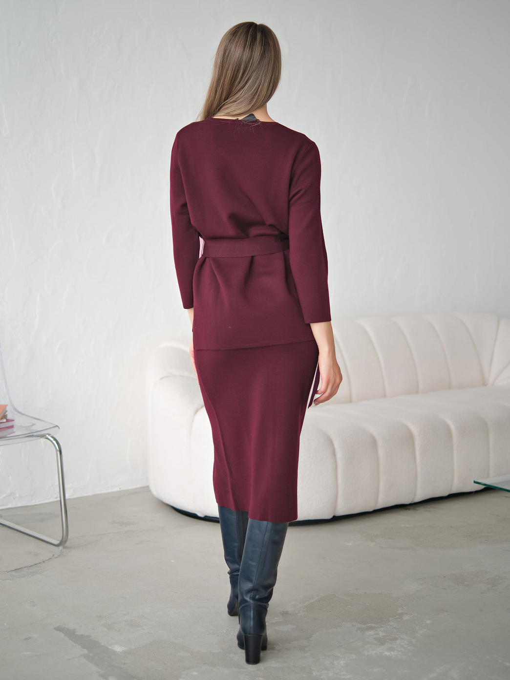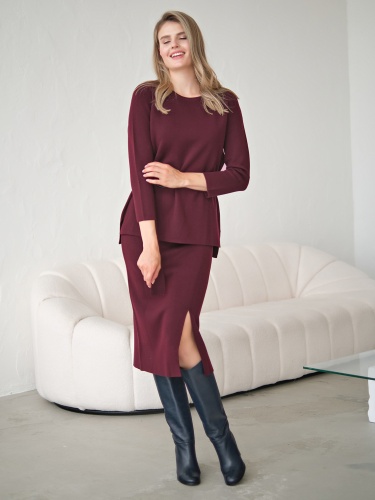 Однотонная трикотажная юбка длиной ниже колена. Комфортная посадка по естественной линии талии. Разрез придает женственной пикантности образу. Состав из 100% шерсти делает материал долговечным, приятным к телу и хорошо сохраняющим тепло. Юбка выигрышно смотрится в составе комплекта с джемпером из той же коллекции.