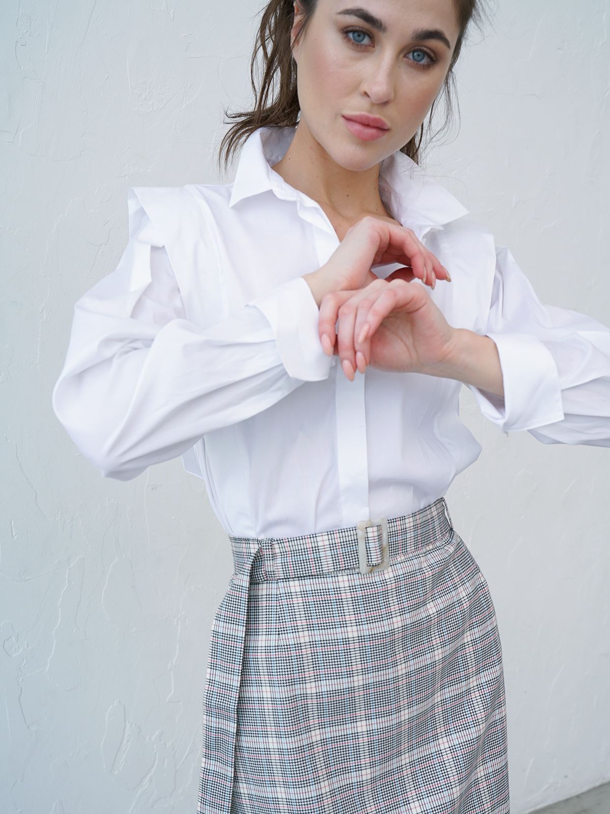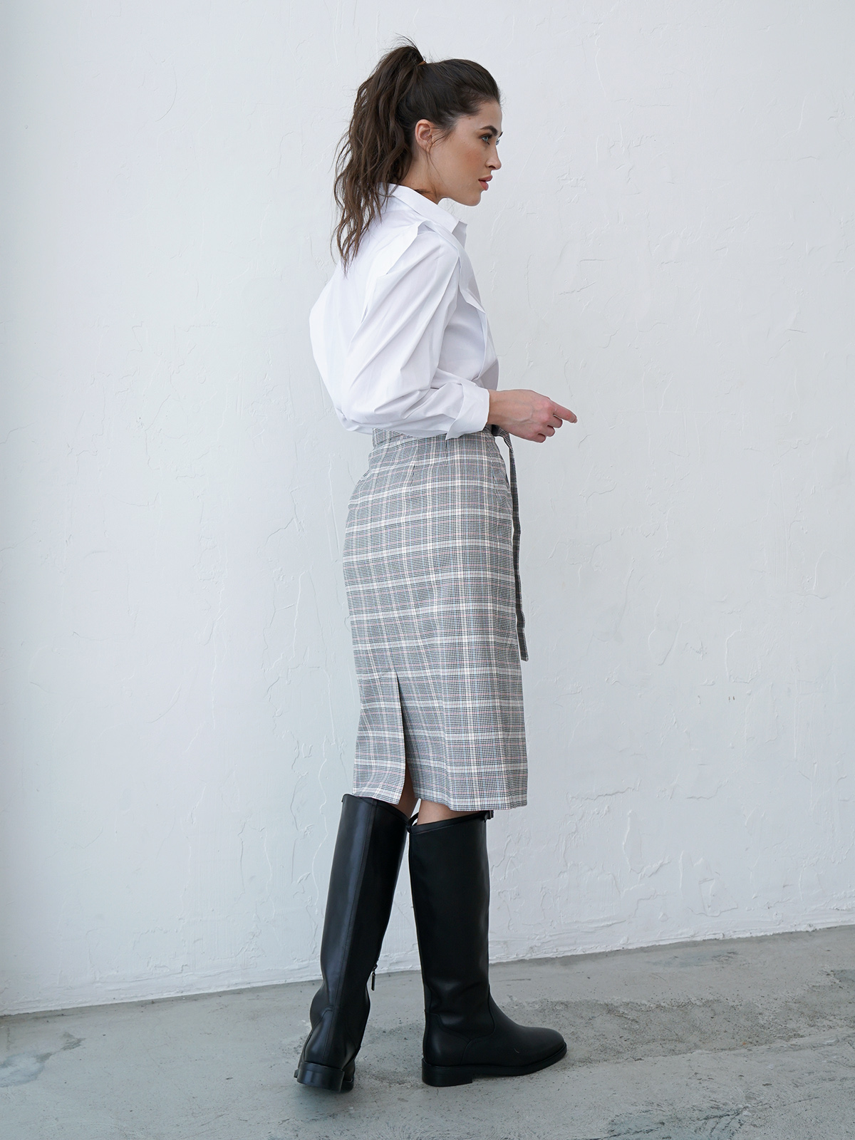 Юбка-карандаш в клетку. Застежка на молнию. В комплекте идет тканевый пояс.
