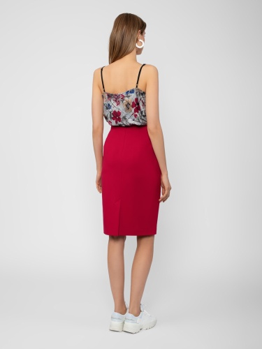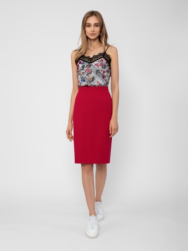 Классическая юбка удлиненного прямого силуэта на притачном поясе. Сзади шлица и застежка на потайную молнию.