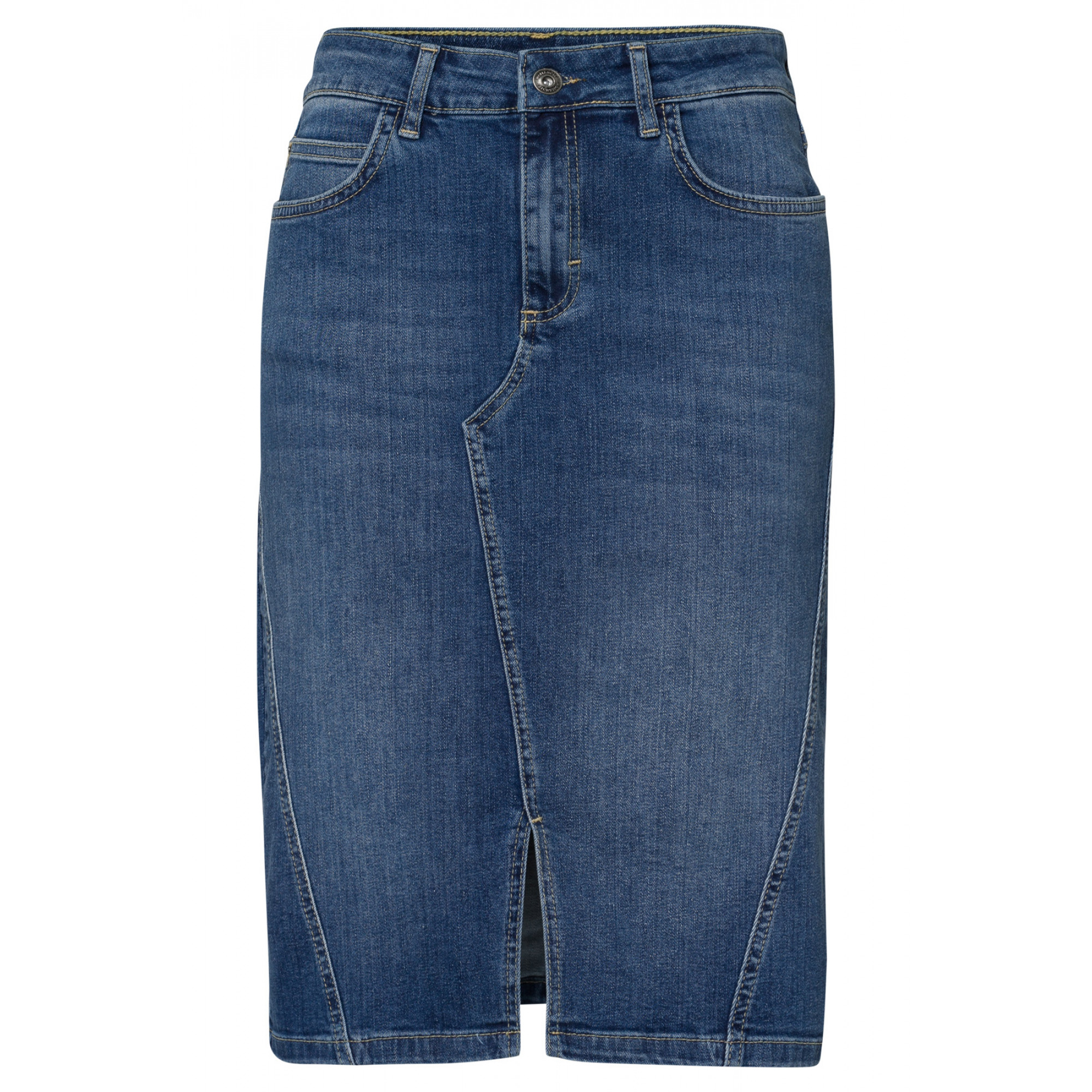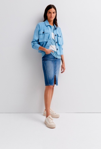 Узкая джинсовая юбка с 5 карманами из слегка выцветшего денима. Универсальная, комбинируемая юбка с идеальной и удобной посадкой — незаменимая базовая вещь в каждом гардеробе. Очень удобная благодаря эластичному компоненту. Длина в размере 44 = 58см