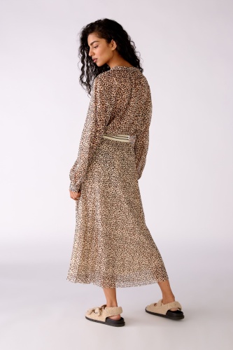 Немецкий бренд. На сайте указаны российские размеры. Плиссированная юбка из легкой сетки с леопардовым принтом. Модная длина миди и расклешенный силуэт А. Для выигрышного акцента на талии солнечные складки. Мягкий эластичный пояс добавляет юбке спортивный характер.