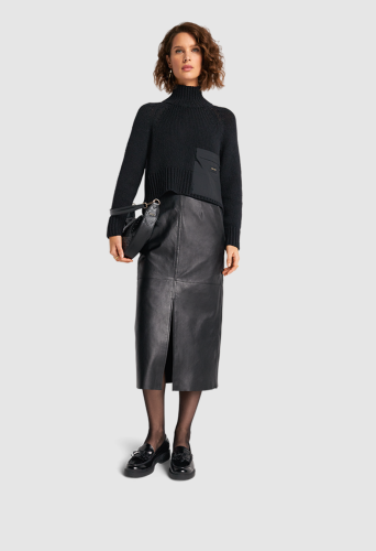 Юбка-карандаш в модной длине миди, с отличной посадка и удобным разрезом.