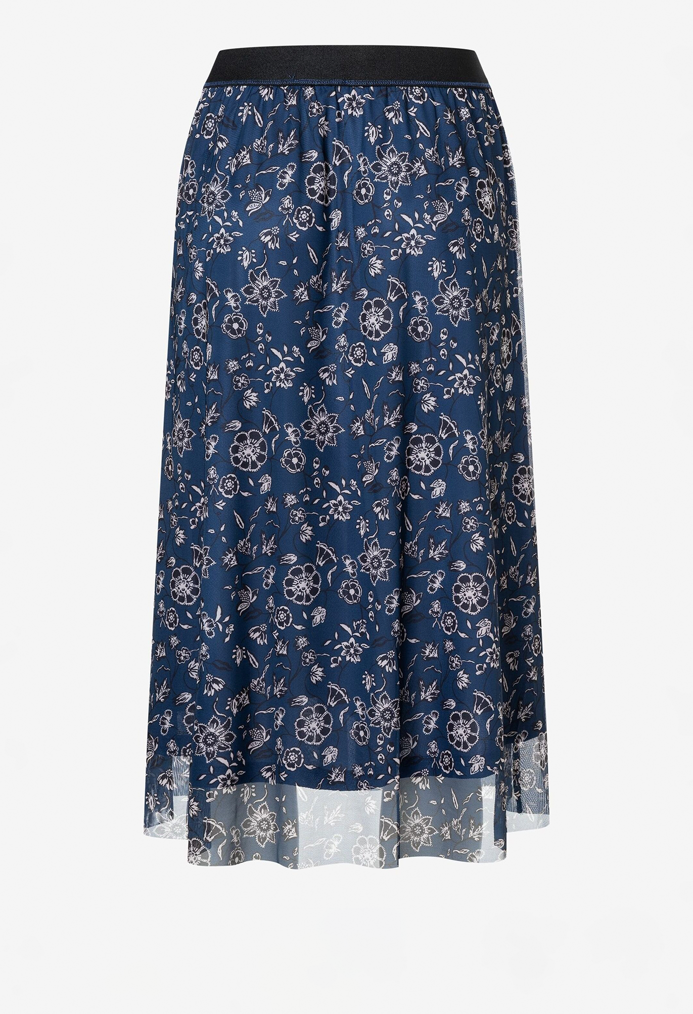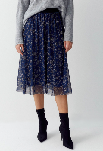 Струящаяся сетчатая юбка с современным цветочным принтом и несложным эластичным поясом. Свободный, струящийся силуэт. Несложная форма без шнуровки с эластичным поясом. Современная длина миди. Длина по размеру 42 - 74 см.