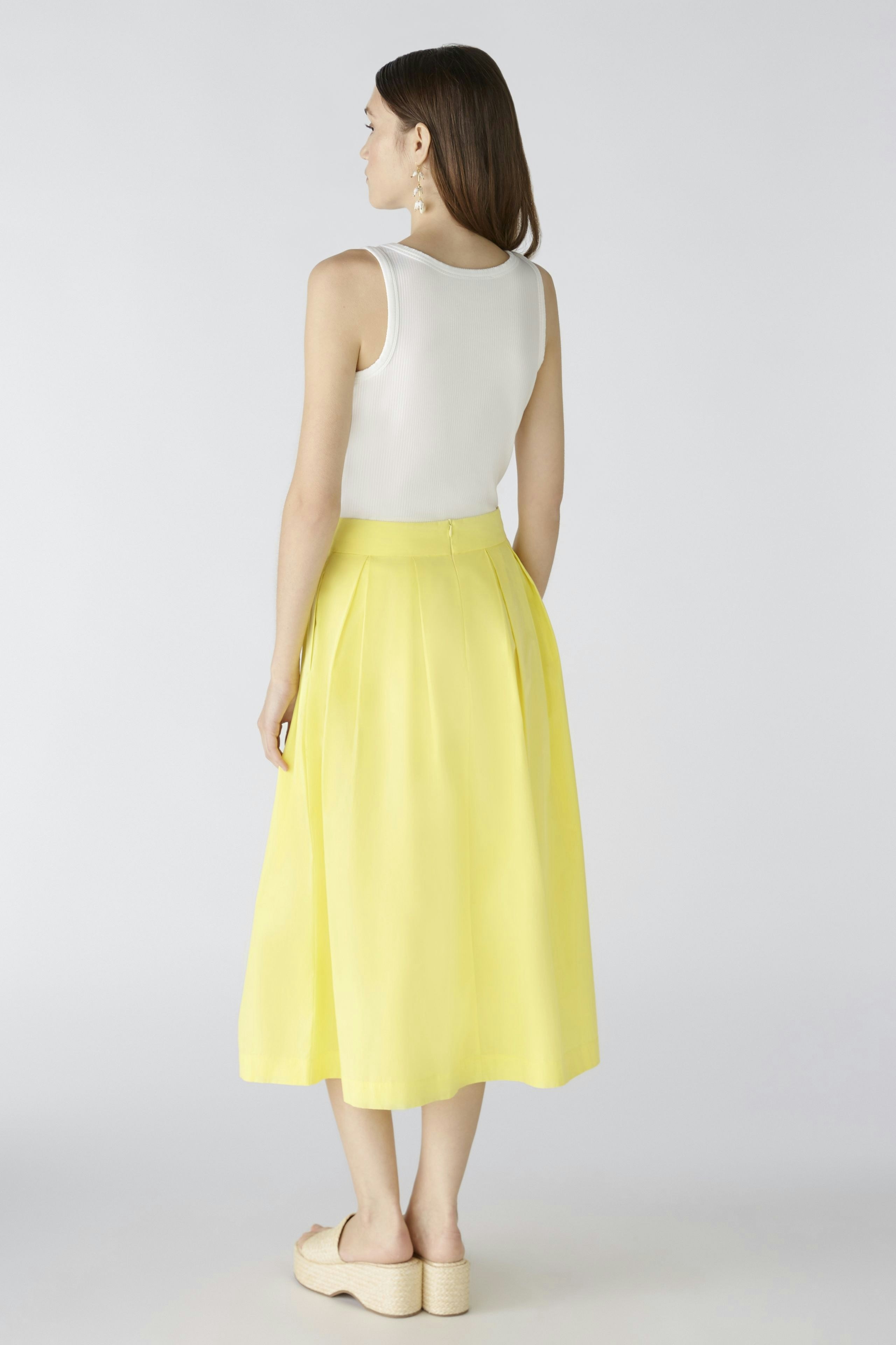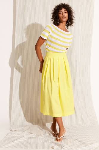 Летящая юбка-миди из летнего хлопка. Высококачественный хлопковый поплин. А-образный силуэт, длина миди. Форма пояса. Молния сзади. Два боковых кармана. Длина для размера 42: 84 см.