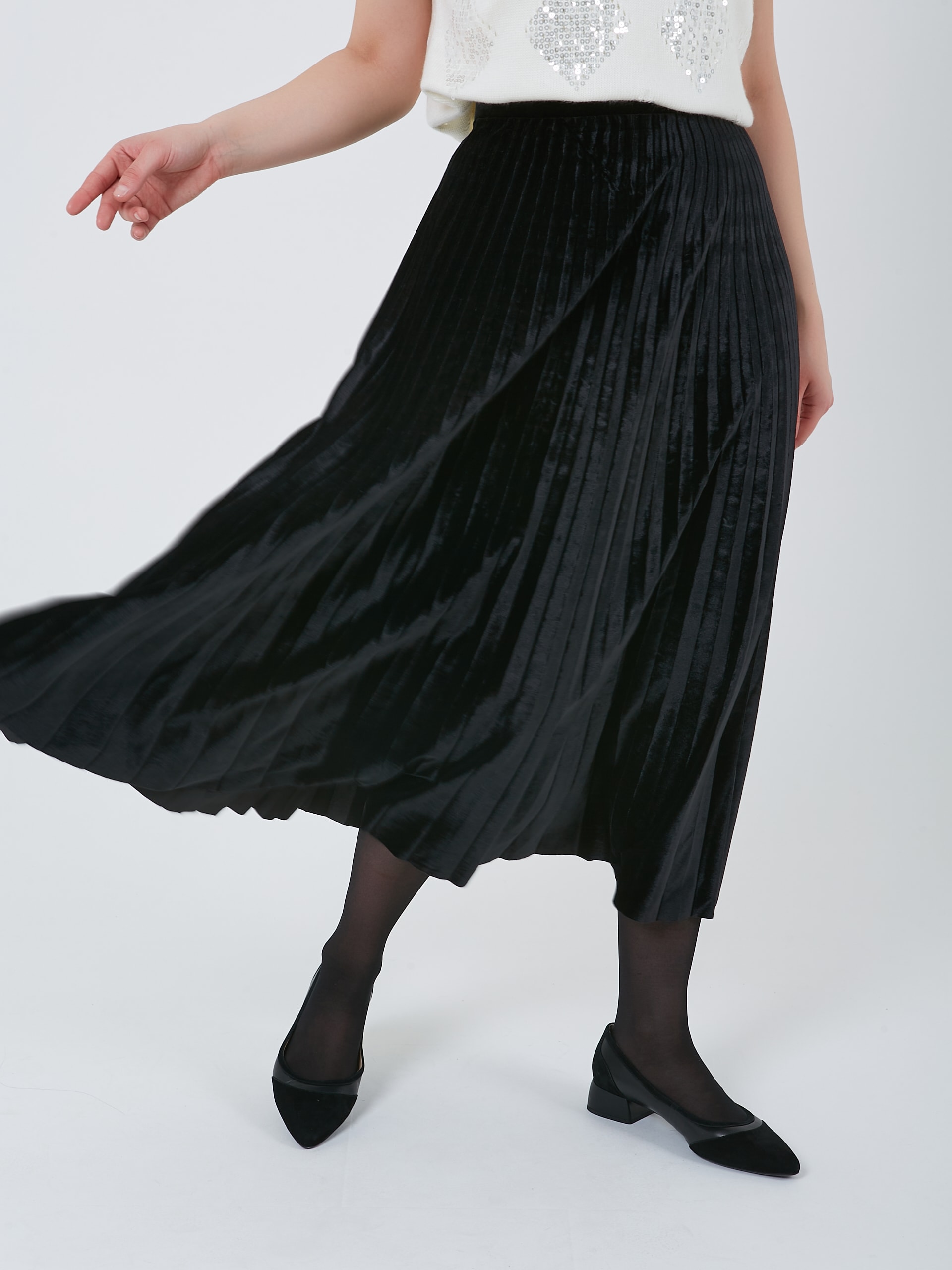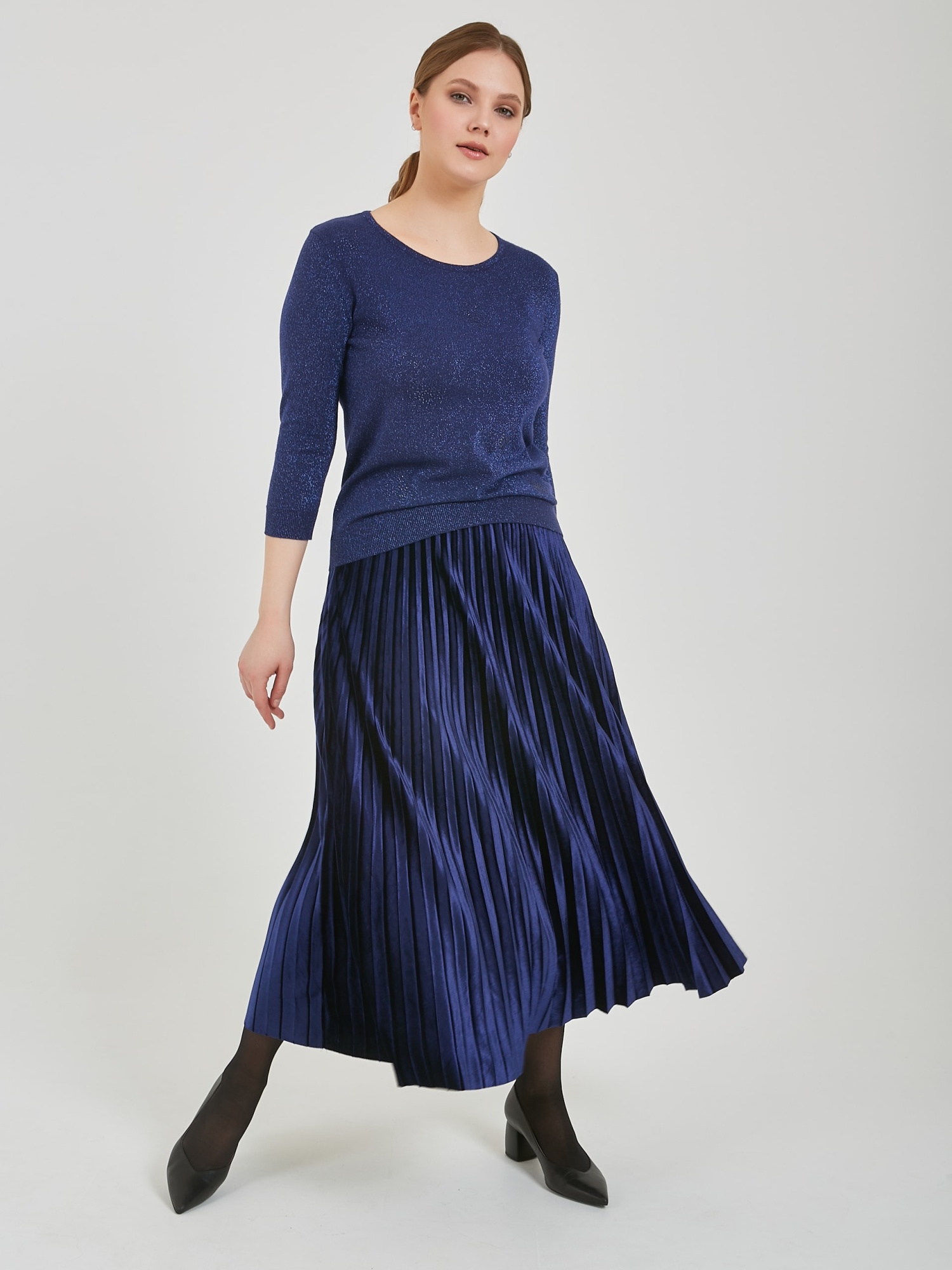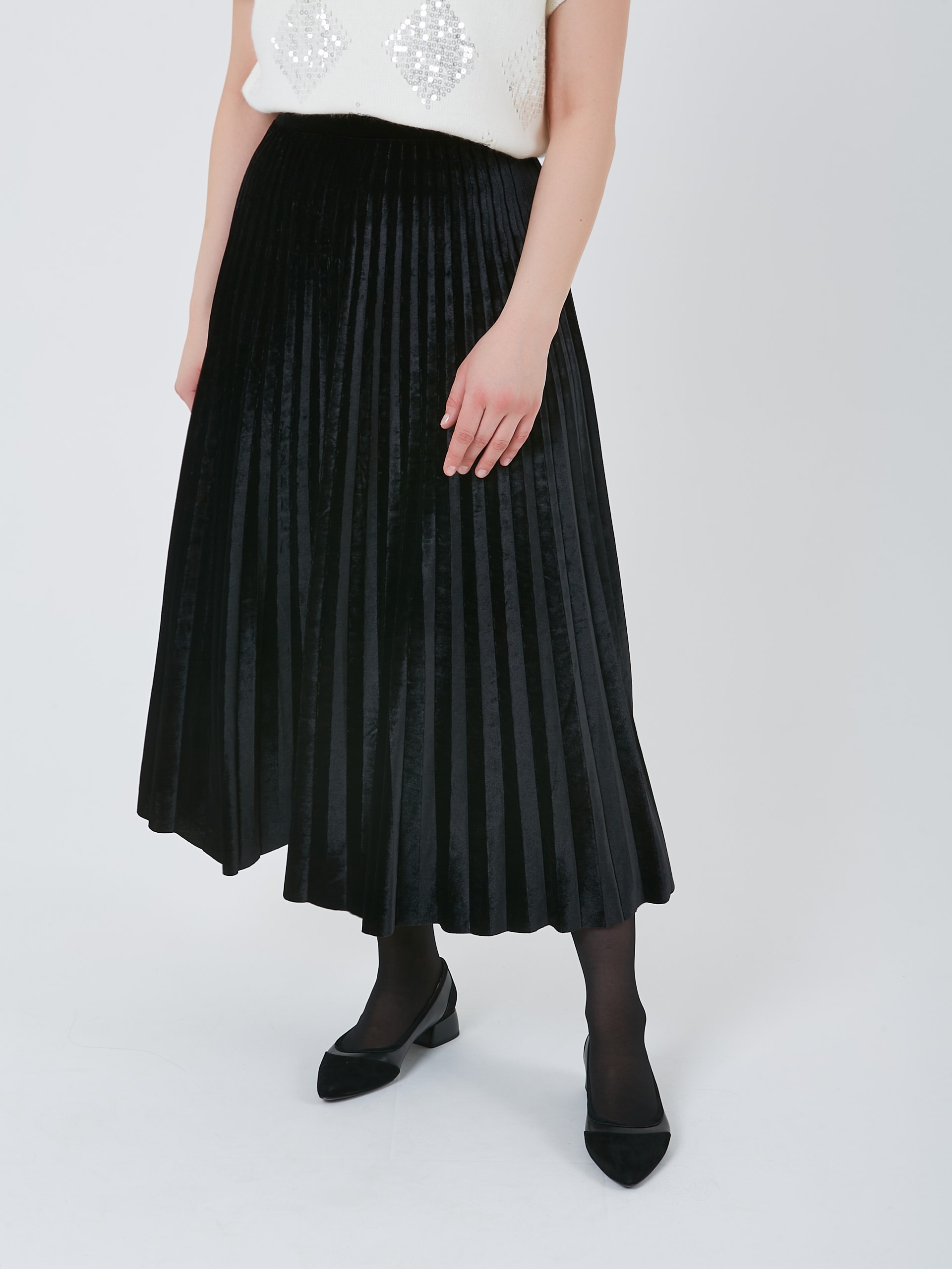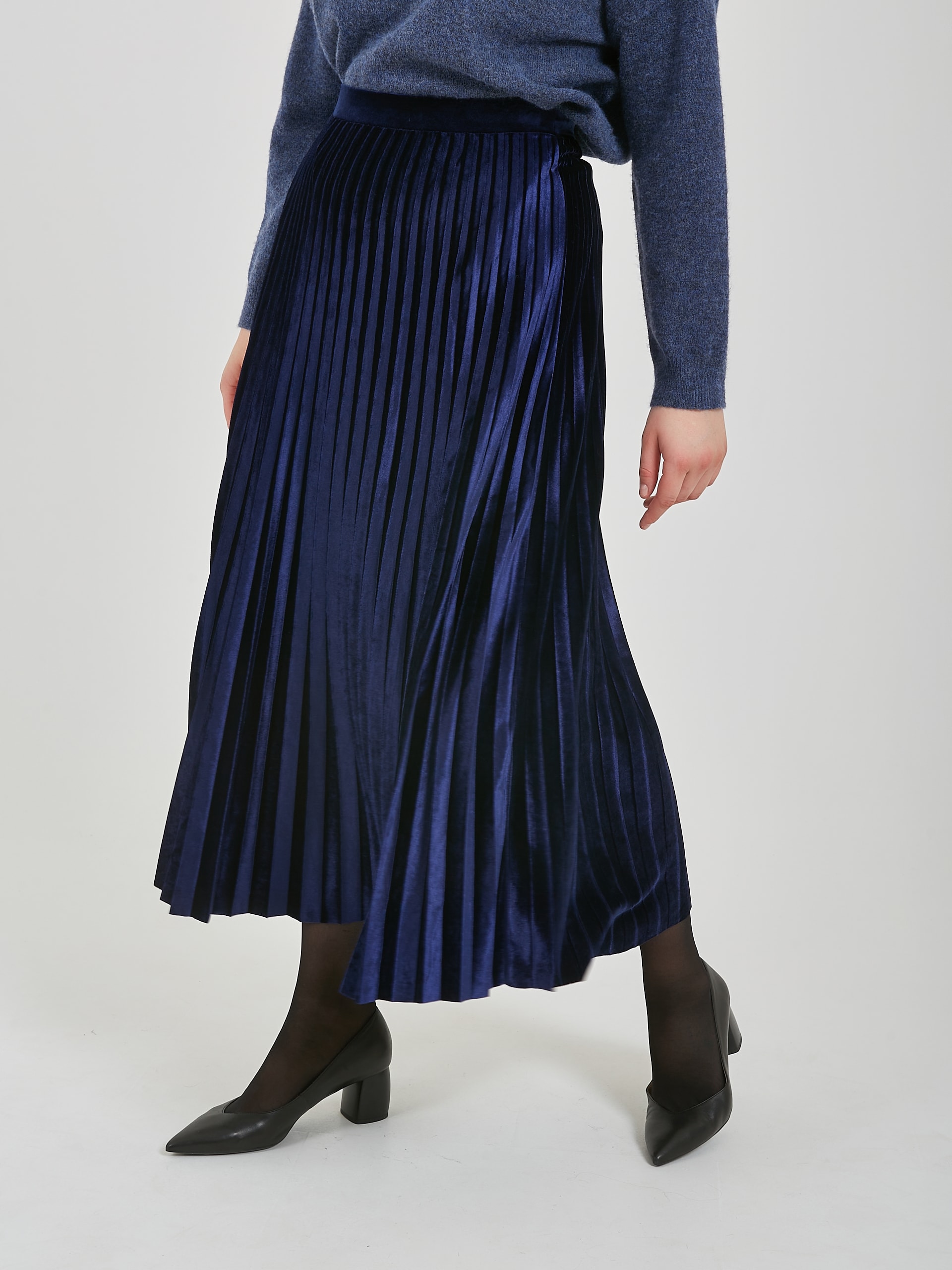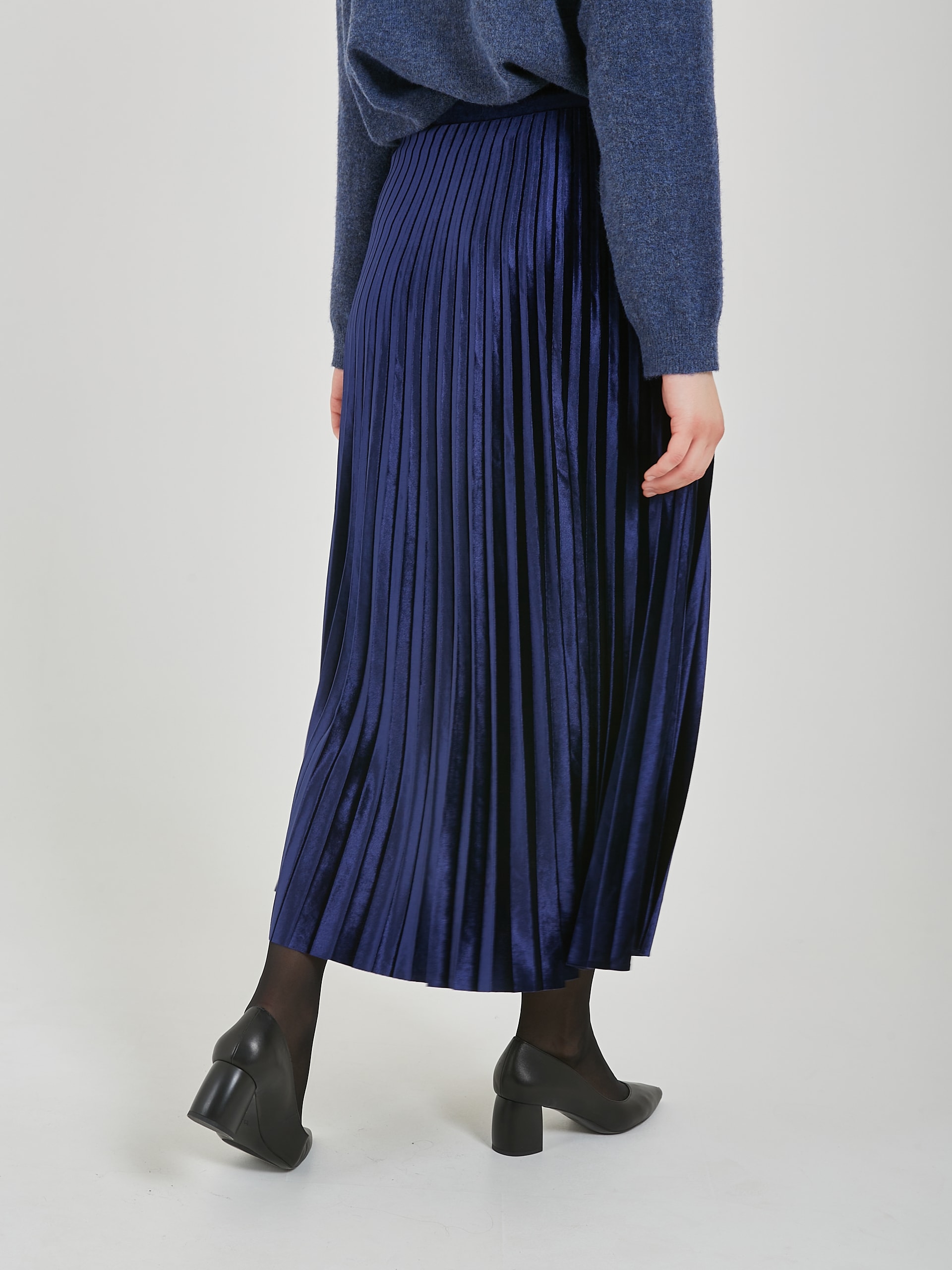 Бархатная юбка плиссе в сапфирово - синем и черном оттенках.