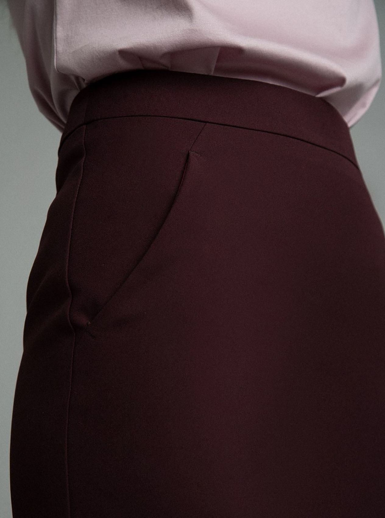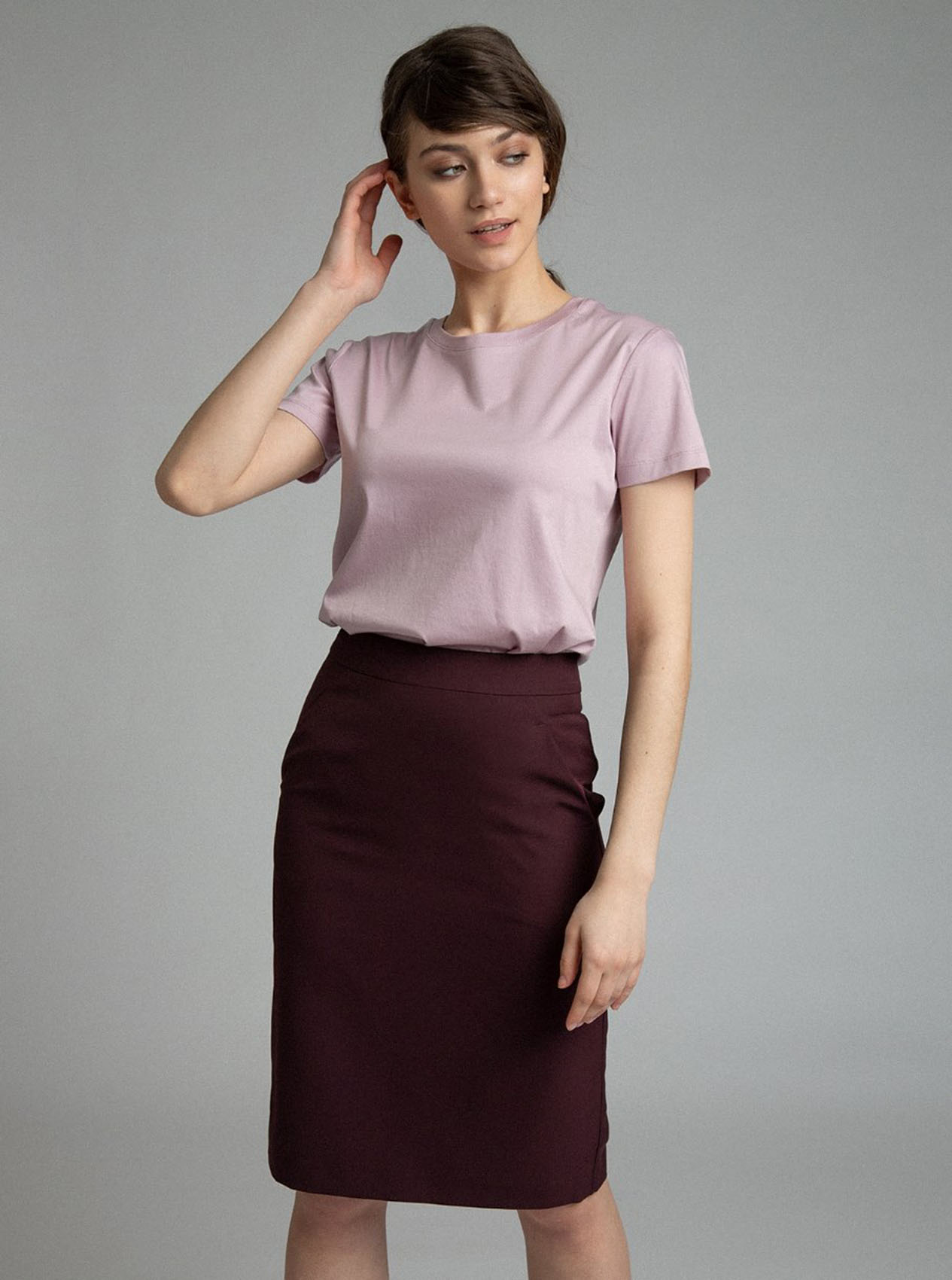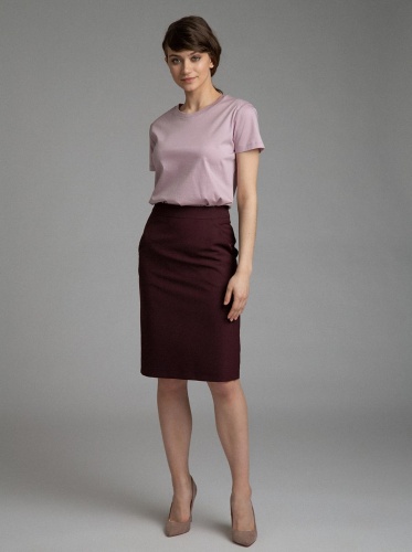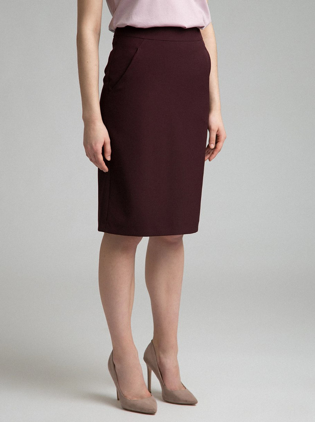 Офисный вариант. Прямая юбка благородного цвета бордо разнообразит классический офисный гардероб.