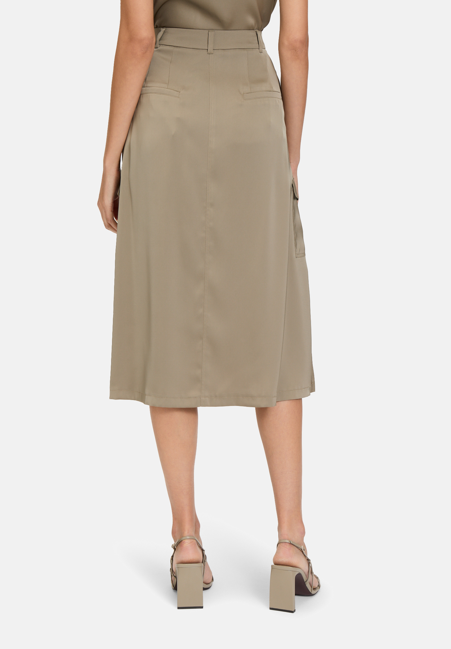 Эта атласная юбка карго-стиля сочетает в себе стильную элегантность и практичность. Современный лаконичный дизайн и изысканные детали, такие как крючки, петли и прочная молния, делают её универсальной. Накладные карманы не только обеспечивают дополнительное место для хранения вещей, но и подчёркивают модный образ.