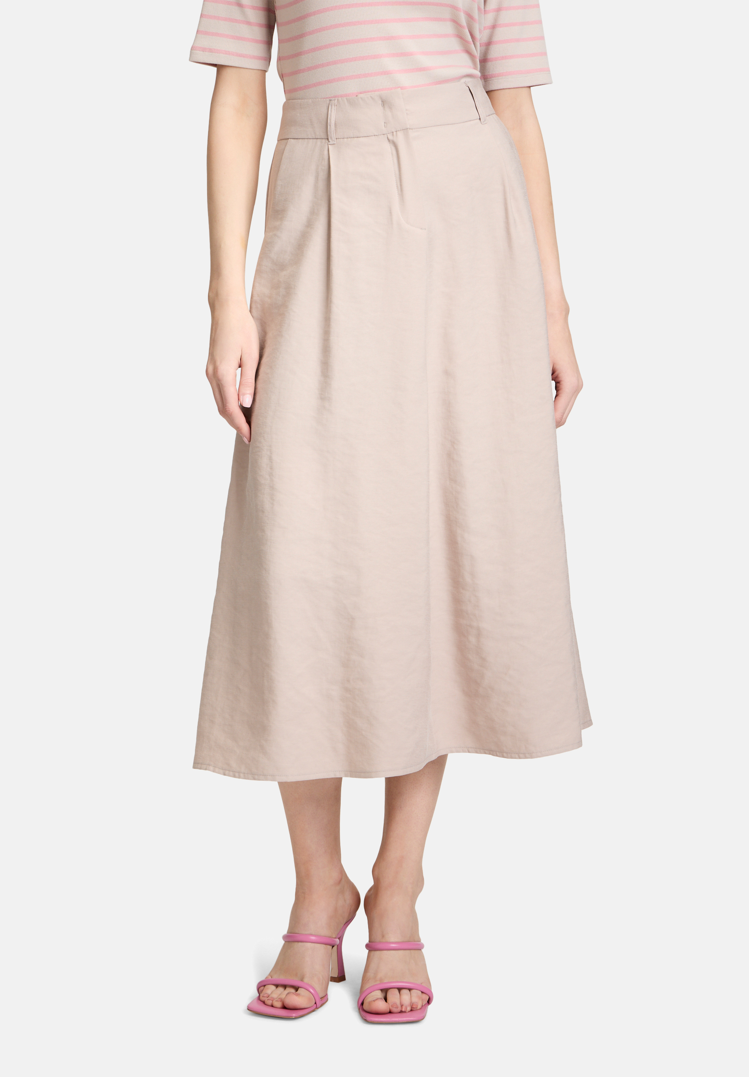 Эта юбка А-силуэта впечатляет лёгкостью ткани, обеспечивая максимальный комфорт — идеально для тёплых летних дней. Расклешённый крой выгодно подчеркивает фигуру, а однотонный цвет делает её универсальной. Юбка с застёжкой на крючок, молнией и карманами в швах также отличается практичными деталями. Идеально подходит для создания непринуждённых повседневных образов