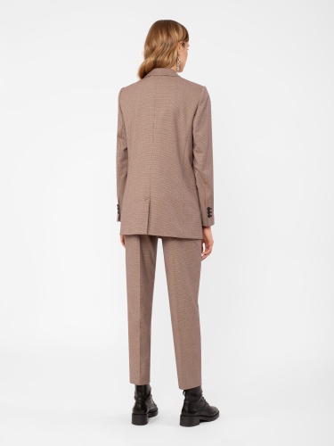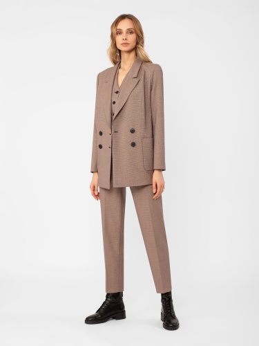 Жакет в стиле кэжуал, прямой свободный силуэт, на подкладке. Воротник английский. Рукав втачной. Застежка двубортная на пуговицы. Карманы накладные.