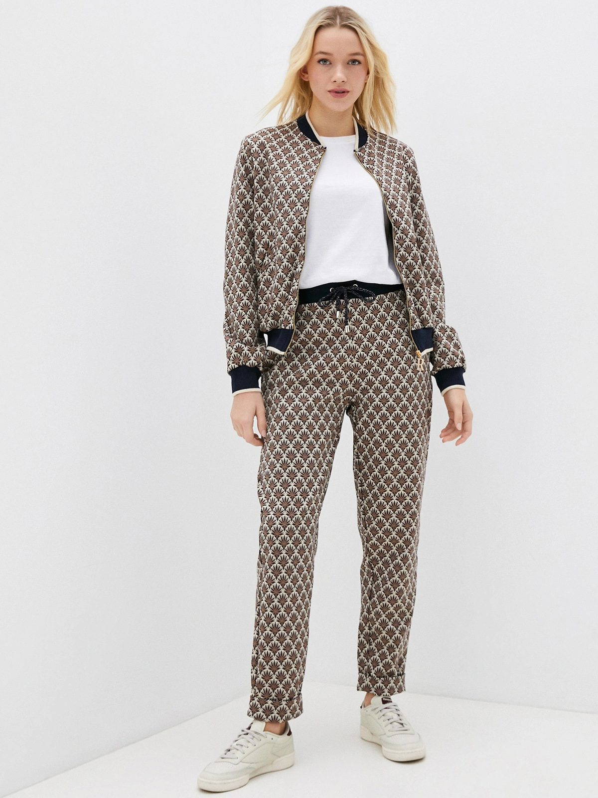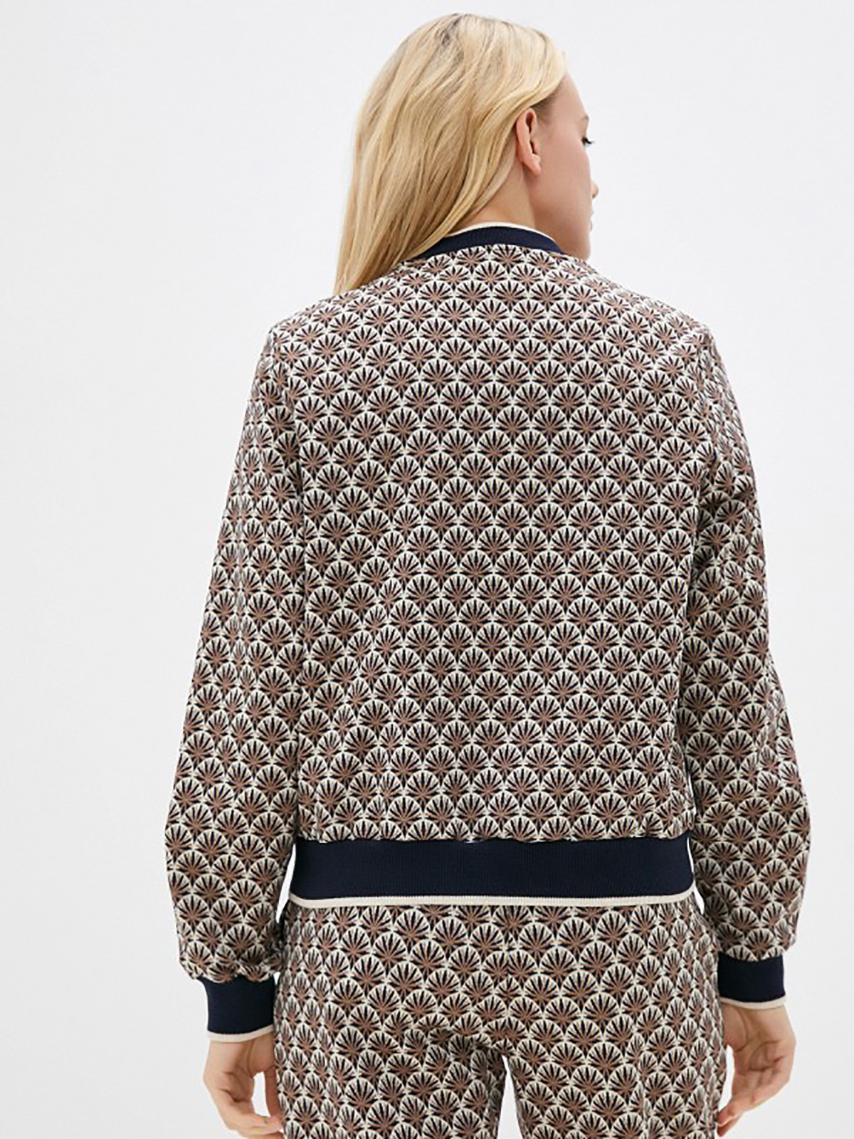 Блейзер с абстрактным принтом по всей поверхности. Застежка на молнию, воротник стойка.