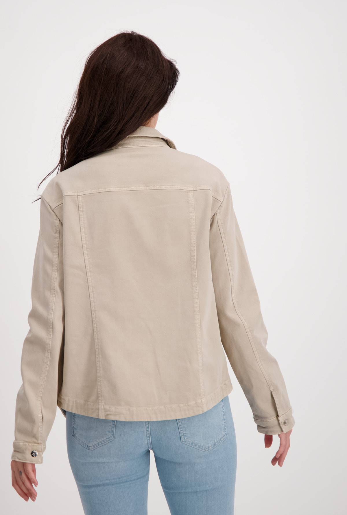 На сайте указаны Российские размеры. Куртка с отложным воротником и накладными карманами. Модель с длинными рукавами и потайной планкой на кнопках отличается большими карманами с клапанами на цепочке и дополнительными прорезными карманами спереди. Форма: прямой крой с закругленным низом, отложной воротник, рукава заканчиваются разрезом и манжетами на одной пуговице. Швы: передний плечевой, продольные разделительные швы на рукавах и спинке, кокеточный шов на спинке. Параметры модели: 42 размер, рост 176 см